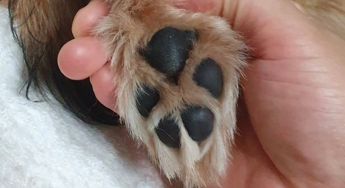어제보다 한층 뽀송해진 털 사이로 왕만두 발뭉탱이가 보였다.