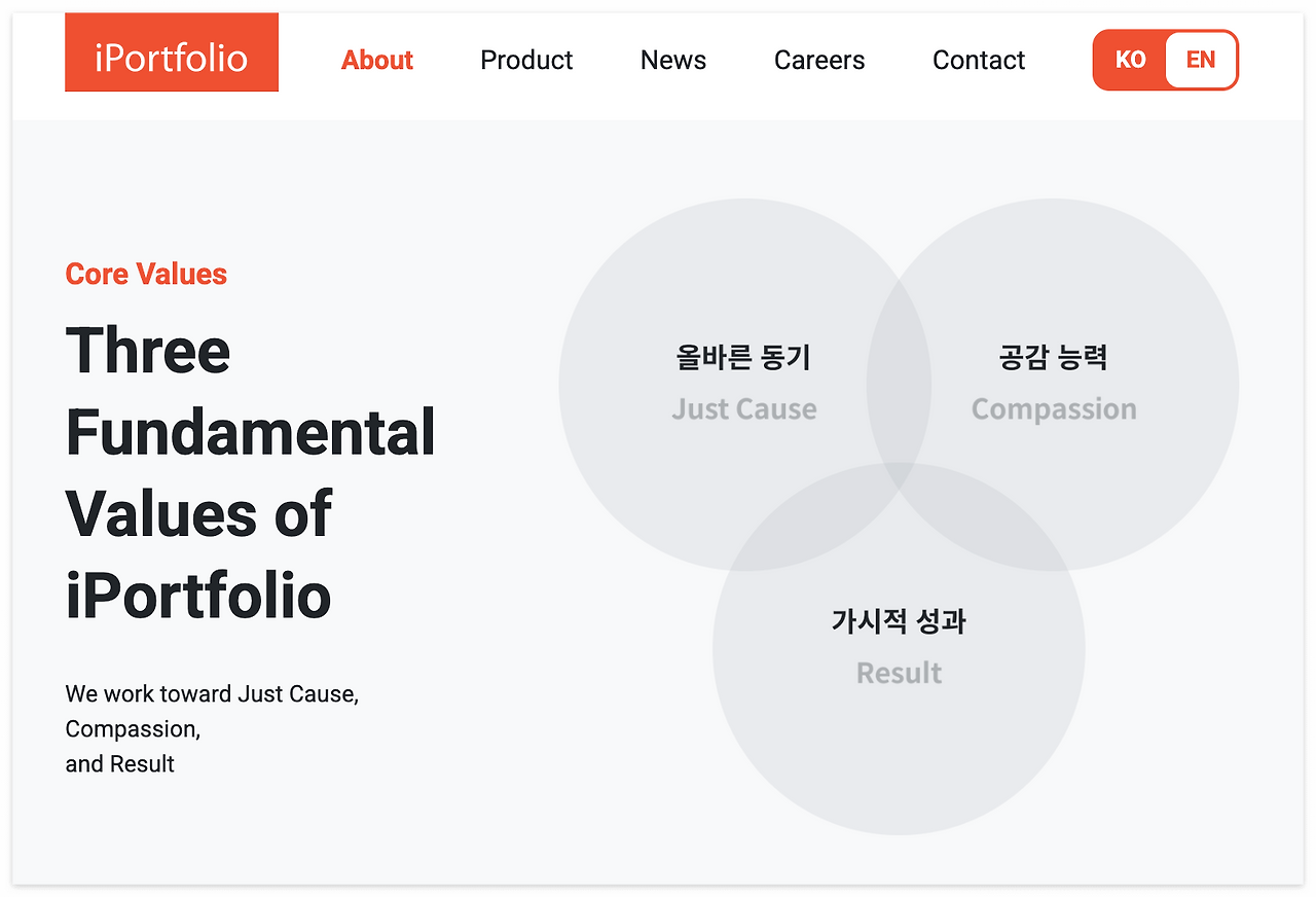 이처럼 개인(個人)의 Congruence는 달성하기가 쉽지 않습니다. 개인은 '나는 왜 존재하는가?'에 대한 질문부터 답을 얻기가 매우 어렵습니다. 무신론자이면 스스로 답을 찾아야 하는데 어디에 답이 있는지 단서 하나 없고, 유신론자이면 신에게 물어봐야 하는데 하나님 전화번호를 모릅니다. 그러나 법인(法人)인 iPortfolio는 애초에 사람이 만들었기 때문에 "왜 존재하는가?"에 대한 답이 명확히 있습니다. 이제 우리 기업에 'Congruence' 개념을 투영해 봅시다. iPortfolio가 주장하는 신념과 말, 그리고 행동은 일치하고 있습니까? 우리 모두 다음 세 가지 질문에 답해 봅시다.