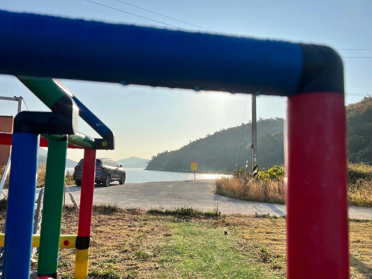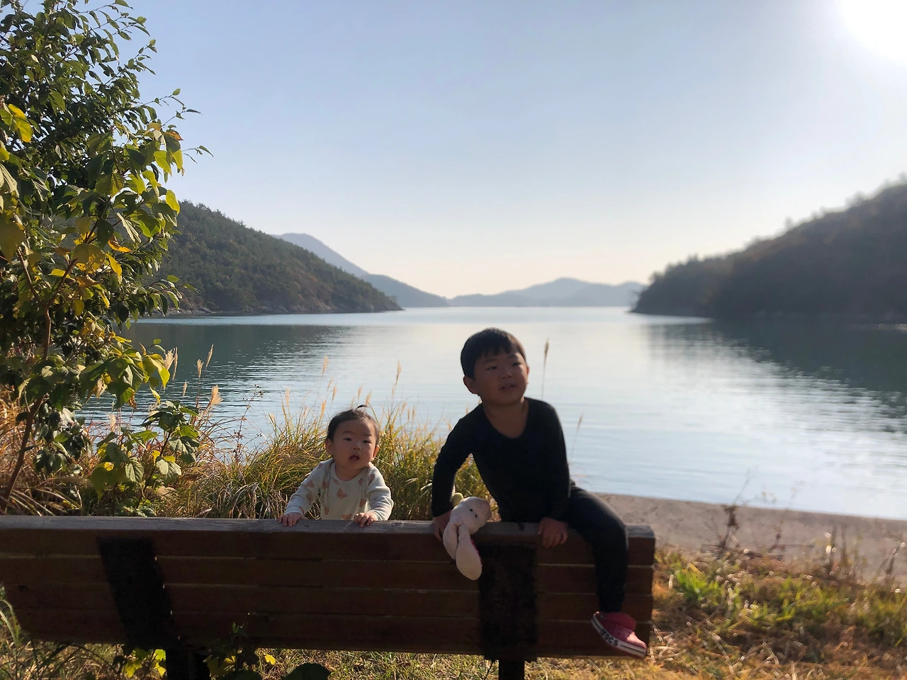 다음 날 아침 화목난로에 불을 피워 몸을 녹이며 아침밥을 먹고 이제 막 벽을 잡고 서기 시작한 딸아이를 정글짐에 올려놓았다. 딸아이가 천진난만하게 웃으며 좋아했다. 떨어지지 않을까 나와 아내만 노심초사했다. 아들 녀석은 지붕 위에 올라가 자기 멋있냐며 어떻게든 딸에게 치우친 부모의 관심을 끌려고 노력했다. 트램펄린에도 들어가 딸아이 두 손을 잡고 둥둥 튕기며 놀았다. 아들도 곧바로 따라 들어와 딸아이는 아랑곳하지 않고 일부러 더 크게 방방 뛰었다. 그네도 환상적이었다. 앞을 보고 타면 잔잔한 바다가 보였고 뒤를 보고 타면 작은 동산 밑에 갈대가 하늘하늘거렸다. 잠시 즐긴 뒤 아내는 딸아이 잠을 재우고 나는 아들과 함께 모래놀이를 했다. 그렇게 어느 가을날의 우리 가족 캠핑은 고요하고 평화로웠다.