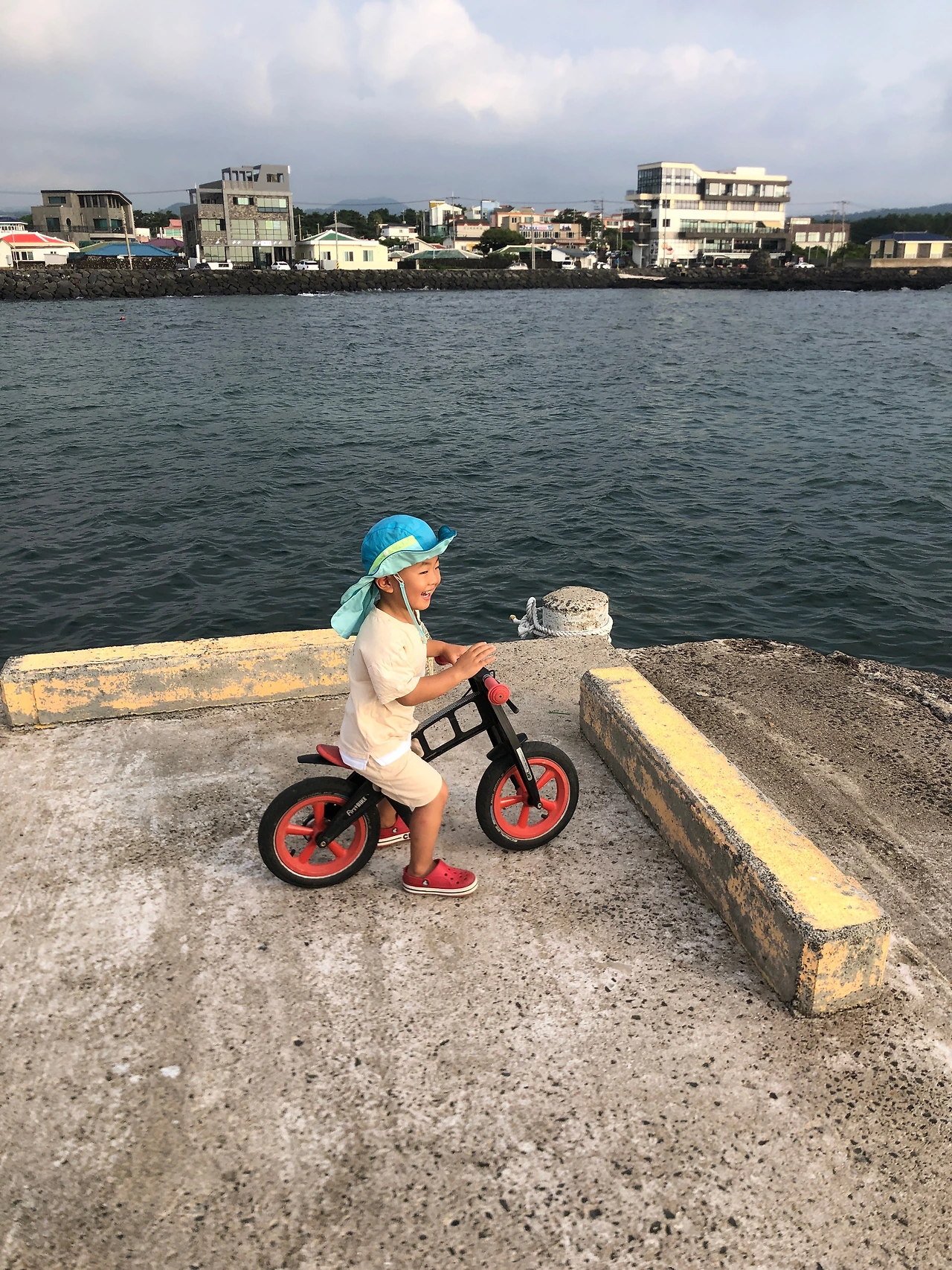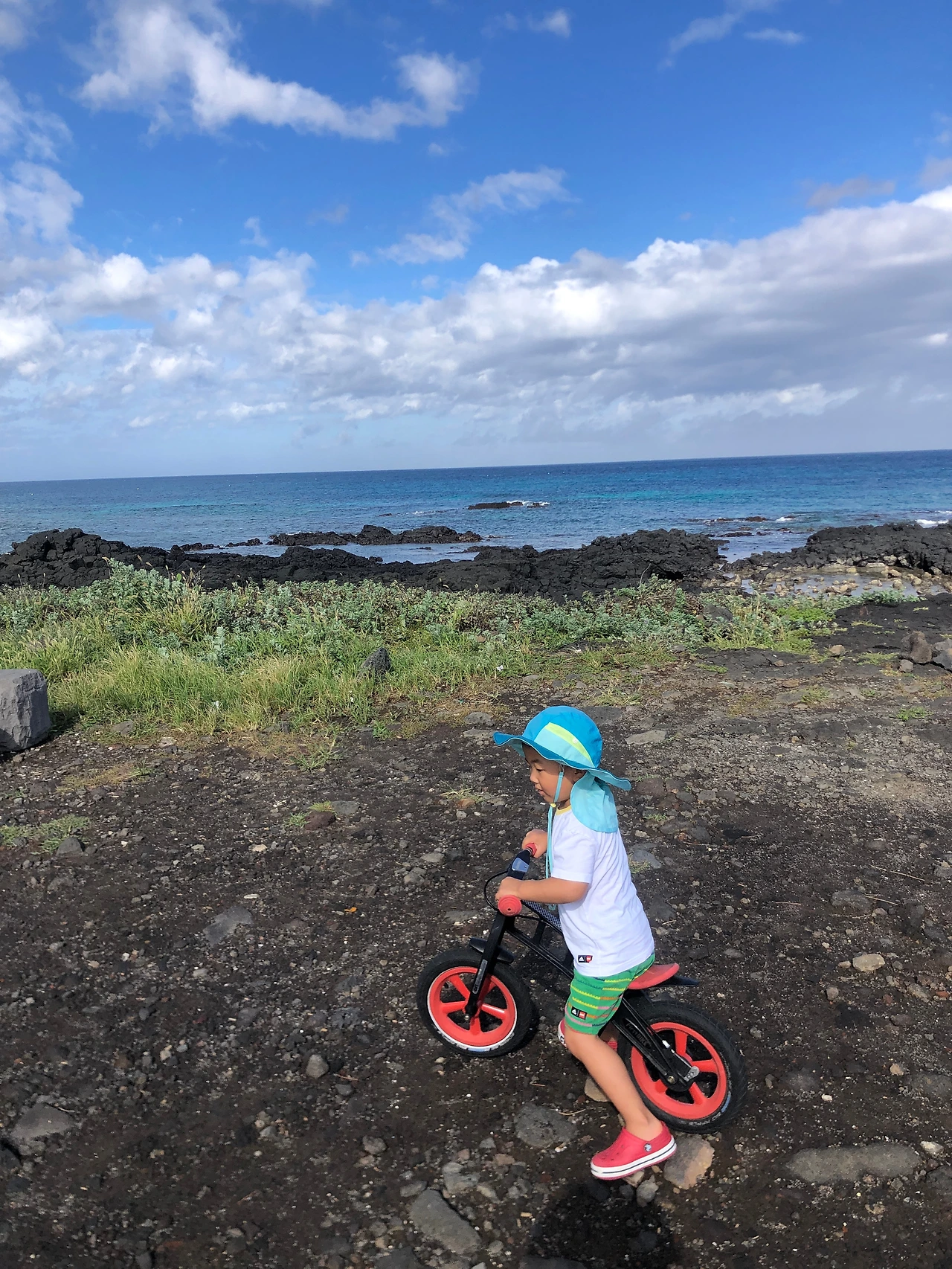 어쩌다 아침 수영을 마치고 아내가 딸아이를 재울 때 아들과 자전거로 동네 한 바퀴를 돌기도 했다. 자동차로 한림 하나로마트를 가면서 지났던 길을 자전거로 달렸다. 현무암 돌담 정겨운 길을 벗어나 도로를 조금 타다 편의점에 들러 스크류바 두 개를 사서 후르릅 빨면서 계속 달렸다. 아들 녀석은 페달이 없는 자전거를 발로 바닥을 차면서 잘도 탔다. 얼굴에 와서 부딪히는 바닷바람이 시원했다. 자전거 위에서 바라보는 제주바다가 너무 포근해 보였다.
