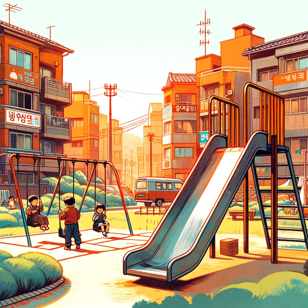 그러던 어느 날, 나는 놀이터가 저마다 다양한 형태와 규모를 갖고 있다는 걸 알게 되었다. 다른 동네의 놀이터에는 계단과 미끄럼틀만 여러 개가 달린 거대한 복합 기구도 있었다. 당연하게도 더 넓어질수록 더 많은 놀이를 할 수 있었기에, 나는 일종의 놀이터 탐험을 다녔다.