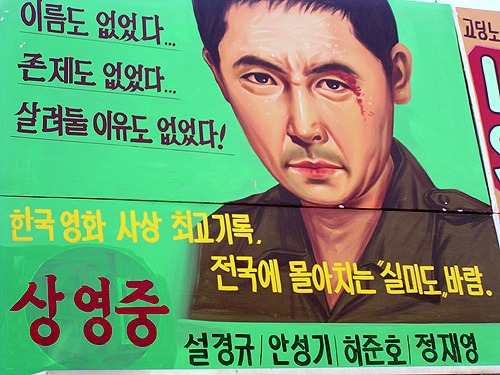 지금과 당시의 극장을 비교했을 때, 가장 큰 시각적 차이는 영화의 포스터다. 지금은 영화관의 내부에 대형 포스터를 건다. 또한 인테리어와 조화를 이루는 스크린을 통해 그 예고편 영상들도 지속적으로 노출시킨다. 그런데 당시에는 건물 외벽에 영화의 포스터가 걸렸다. 그것은 인쇄물이 아닌, 누군가 직접 그린 그림이었다.