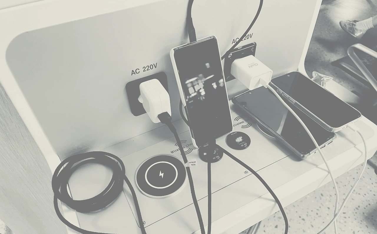 그로부터 며칠 후, 나는 비슷한 장면을 보았다. 공항의 무료 충전 스폿에 수많은 스마트폰들이 연결돼 있었다.