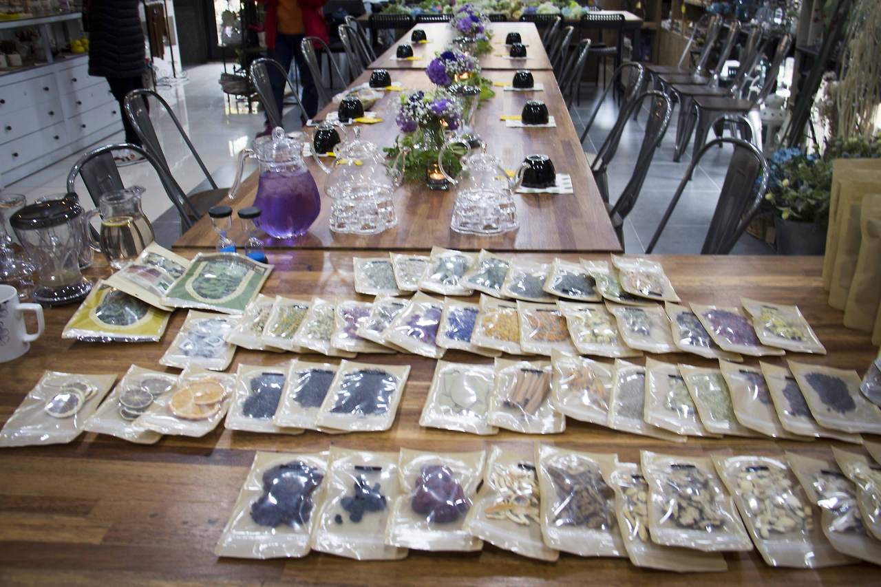 다양한 식물과 꽃 과일등을 말린 것은 차로 음용해도 좋다. 여러 재료가 섞이면 이상할 것 같았으나 재료가 한 가지 더해질 때마다 그 맛이 점차로 오묘해졌다. 많은 것을 가르쳐 주시려는 허브 전문가는 전직이 피아니스트였으나 향기에 빠져 메디칼 허브 전문가가 되었다 한다. 10여 가지가 넘는 아로마 향과 꽃차의 향에 빠진 향기로운 시간이었다.