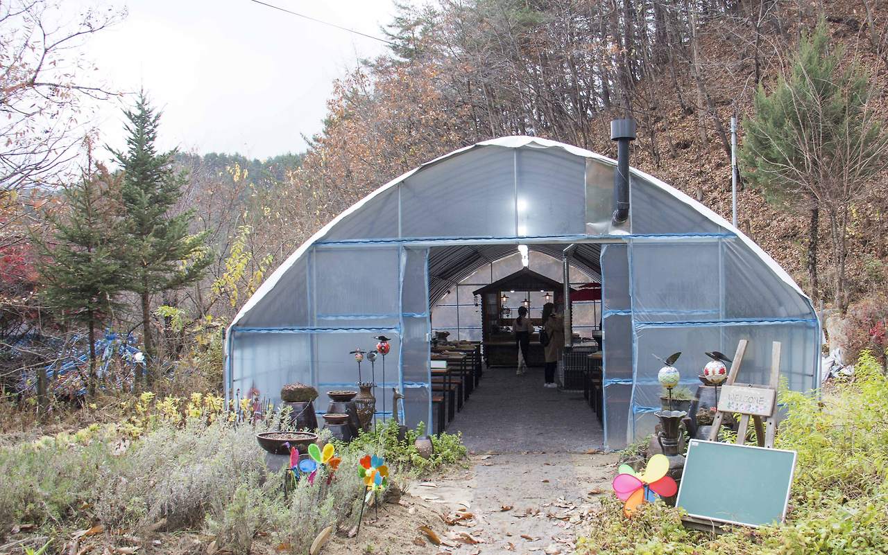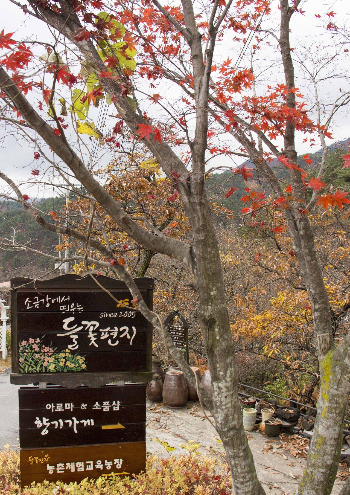 울창한 숲과 수려한 기암의 모습이 금강산을 닮아 작은 금강산이라 불리는 소금강 가는 길에 들꽃편지라는 농촌체험마을이 있다. 큰 버스는 올라가지 못하는 작은 마을이다. 아기자기한 표지판이 쥔장을 닮았다.