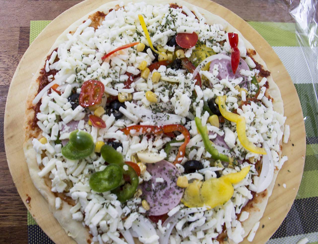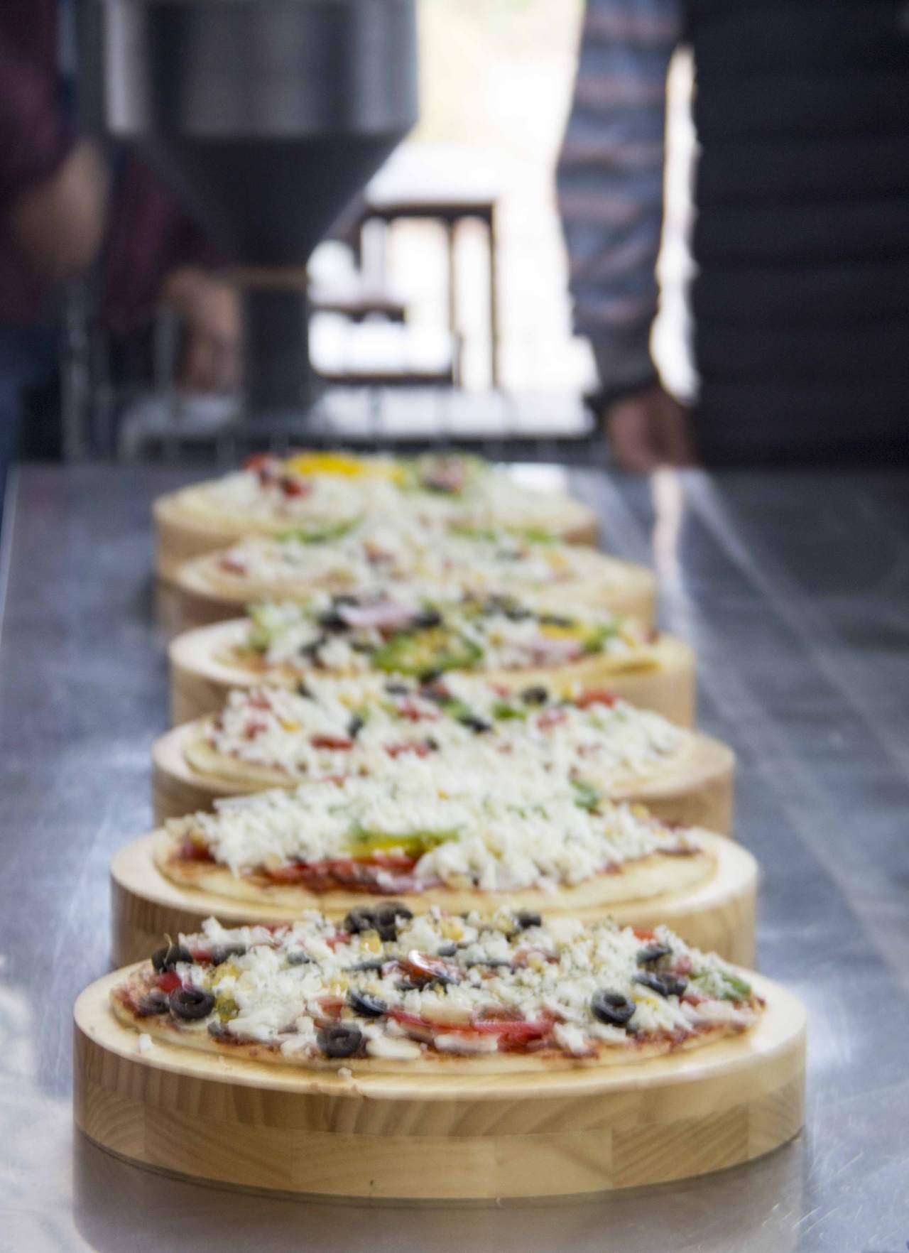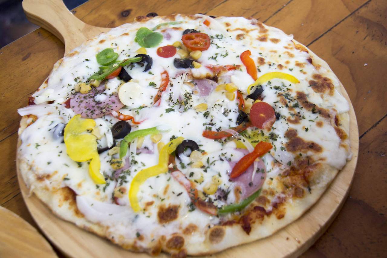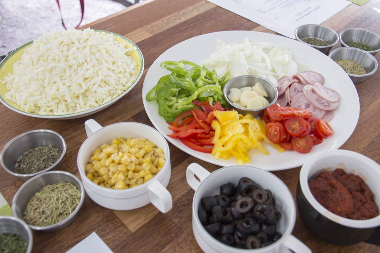 만들어진 도우에 피자 페이스트를 바르고 적당량의 치즈를 토핑 한다. 그리고 피망 햄 옥수수 올리브 등을 예쁘게 토핑 한 후 다시 피자치즈를 듬뿍 올리면 끝! 잠시 후 오븐에서 구워진 따끈따끈한 피자에서는 진한 허브향이