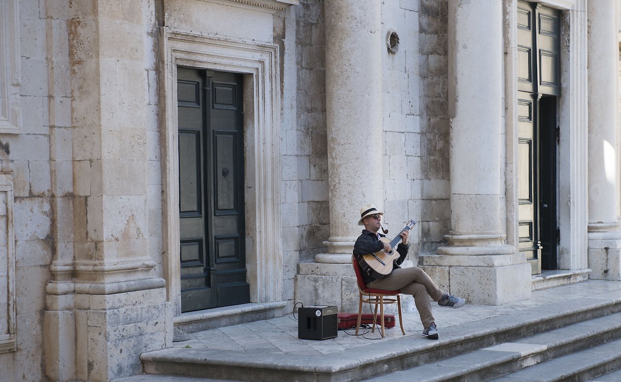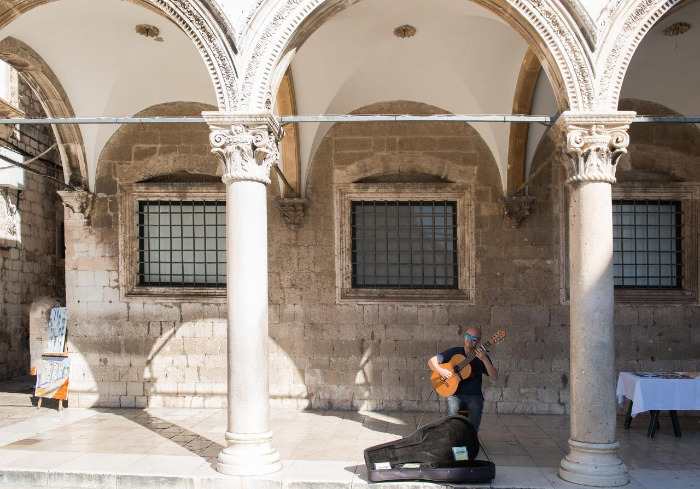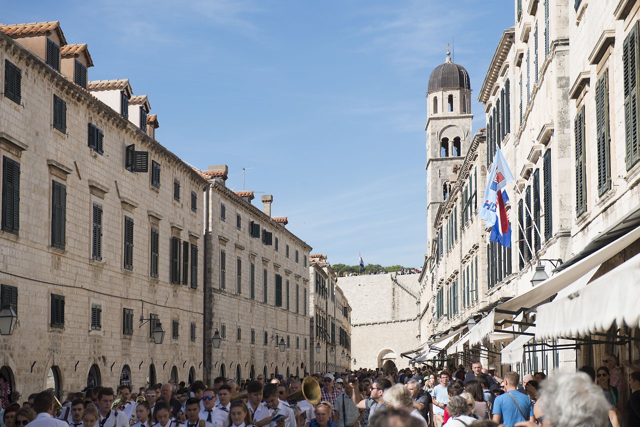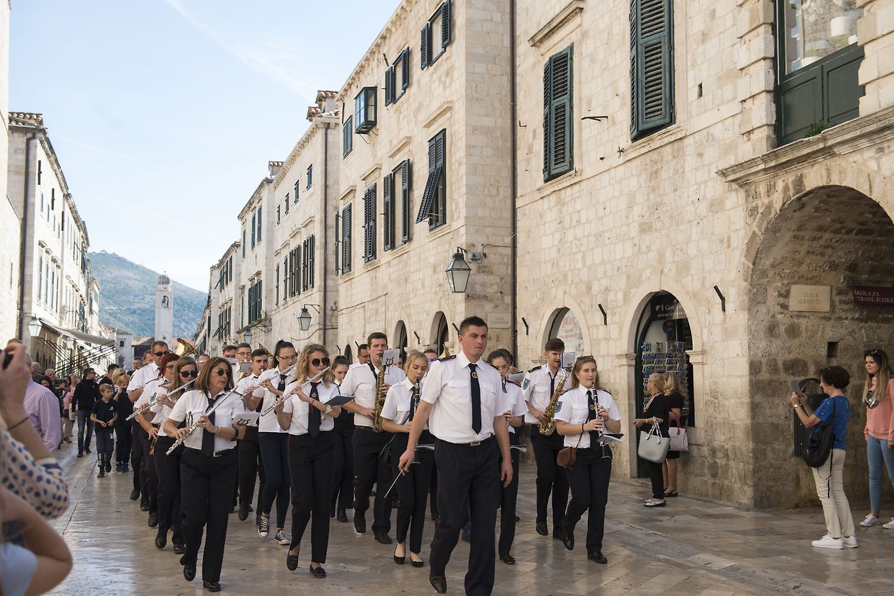 메인 도로인 플라차 거리의 예쁜 상가들을 보고 있을 때 악사들의 행진이 있었다. 관광객들은 환영의 박수와 함께 그들의 모습을 담느라 여념이 없다.