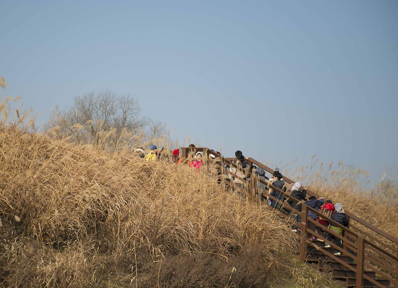 수풀 사이에서 종종거리고 다니는 것은 청둥오리. 엄마 따라 졸졸 쫒아가는 아가들처럼 줄지어 헤엄쳐가는 모습이 마냥 귀엽다. 귀여운 녀석들을 보고 있자니 건너편에 수상한 남자들이 진을 치고 있다. 혹시 포수? 하며 자세히 보니 왕대포(?)를 장전한 사진작가들이다. 새벽 촬영을 끝내고 따뜻한 차 한잔을 하고 있나 보다.