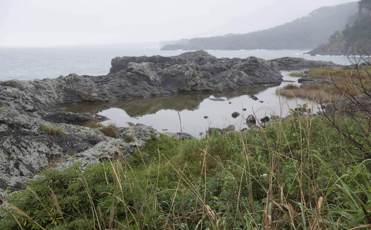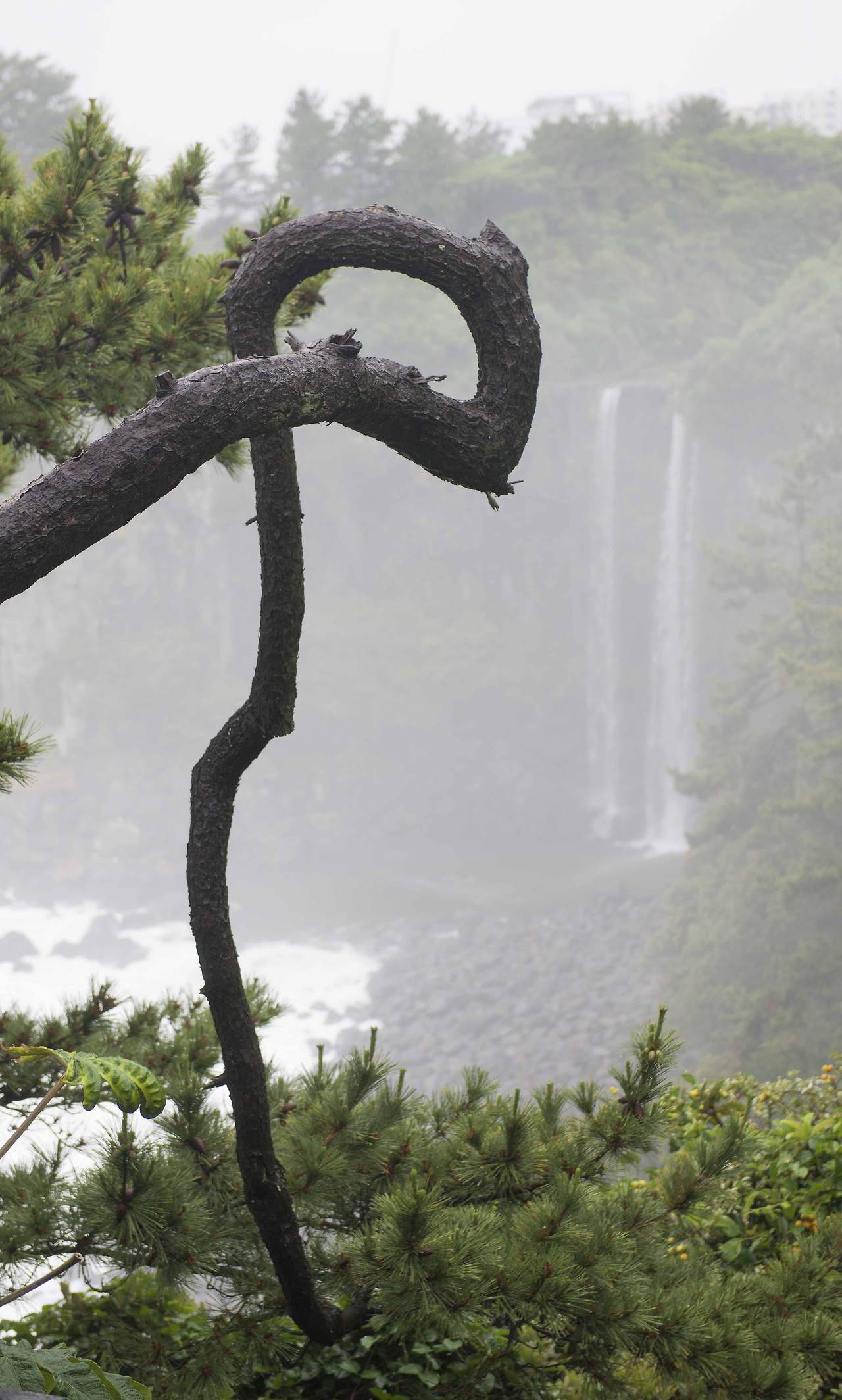 바다로 내려가는 입구에 있는 노송이 폭포와 어우러져 한폭의 그림을 그려낸다.