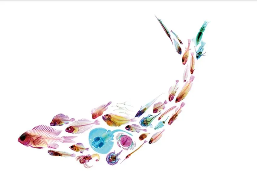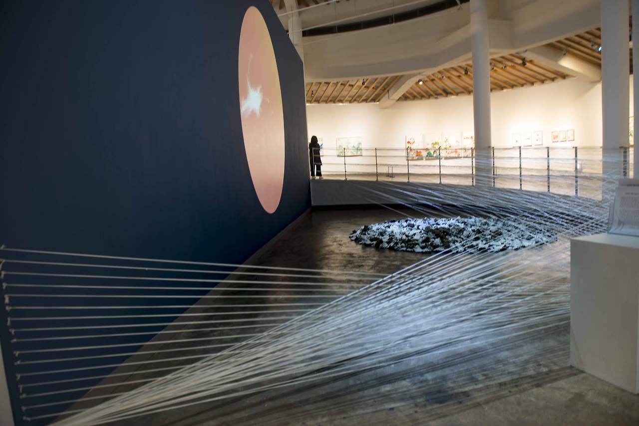 이승현의 피쉬본 제주라는 작품으로 실제 생선을 골격 염색 후 약품 처리한 작품