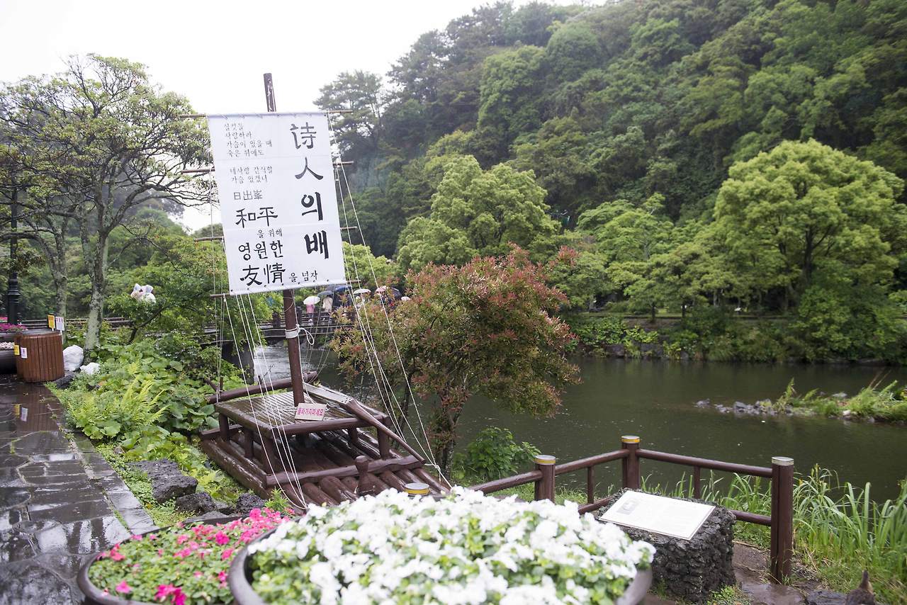 비 오는 날의 폭포는 한층 운치가 있다. 바다로 직접 떨어지는 동양 유일의 해안 폭포가 정방 폭포다. 제주의 까만 화산석으로 떨어지는 높이 23미터 폭 8미터의 폭포는 웅장한 소리와 함께 황홀한 장면을 보여준다. 중국 진나라 시황제가 동양의 삼신산인 한라산에 가서 불로초를 캐어 오도록 하였으나 불로초를 찾지 못하고 정방폭포의 절벽에 서불과지(徐巿過之)라는 글을 새기고 서쪽으로 돌아갔다는 이야기도 있다.