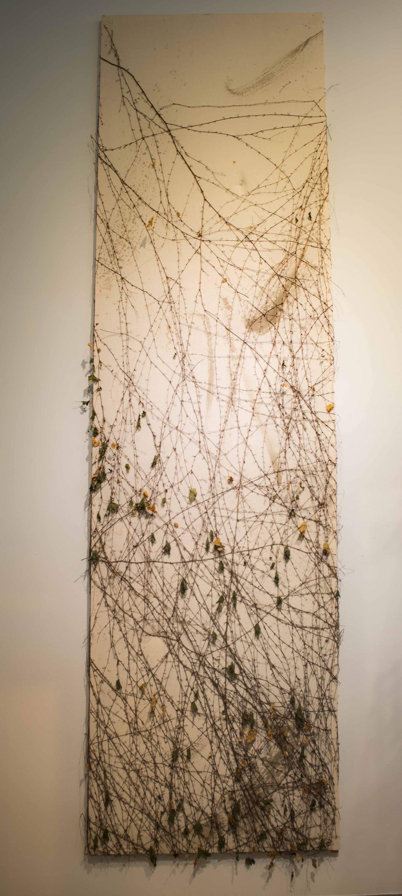 헝겊 위에 실제의 담쟁이 식물을 키워 그것이 시들어 가는 것을 작품화 한 것