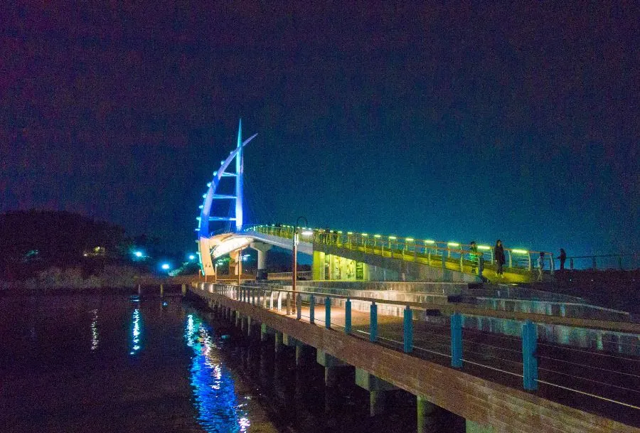 밤 10시까지 조명이 켜진 새연교는 야간 명소로 유명하다.