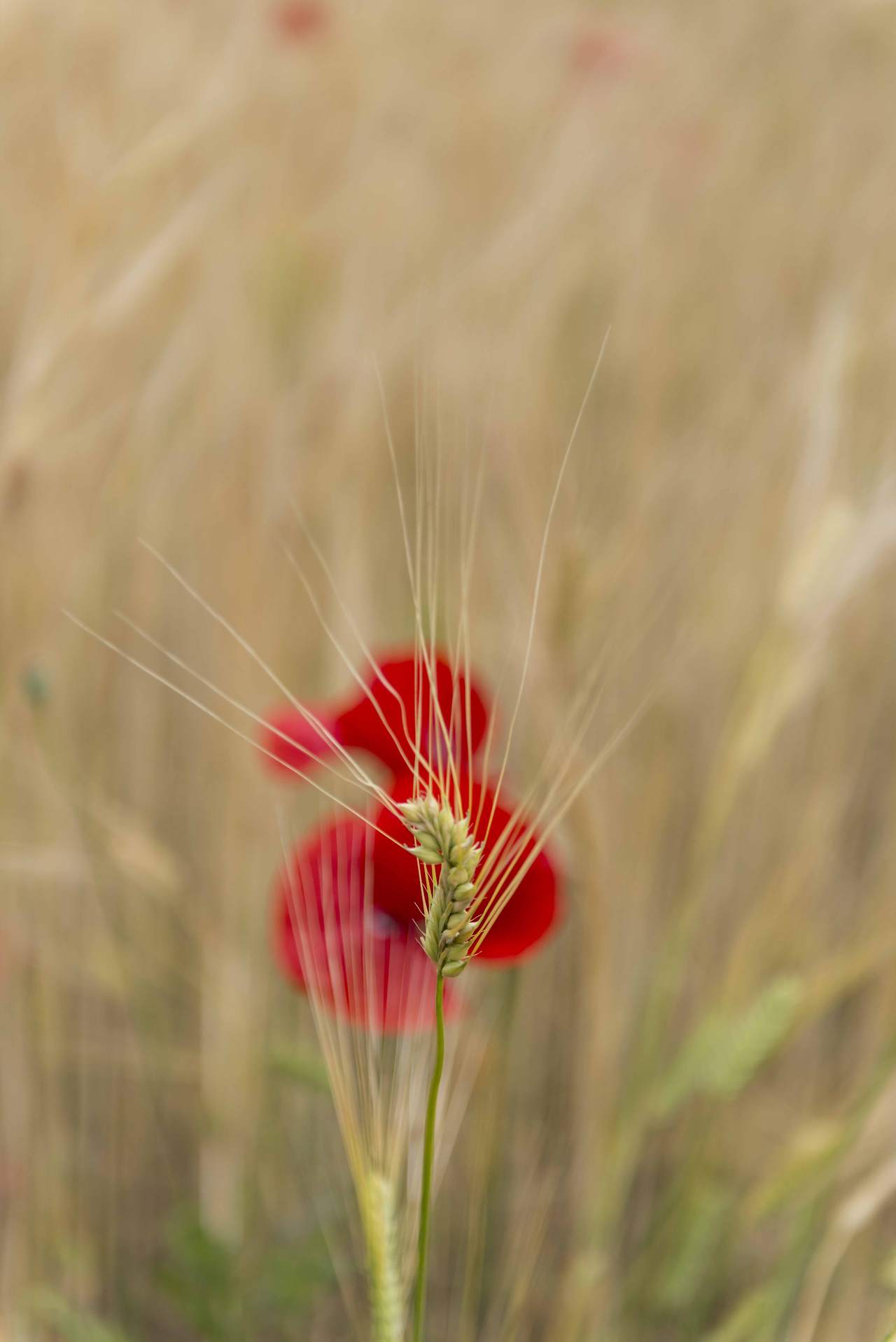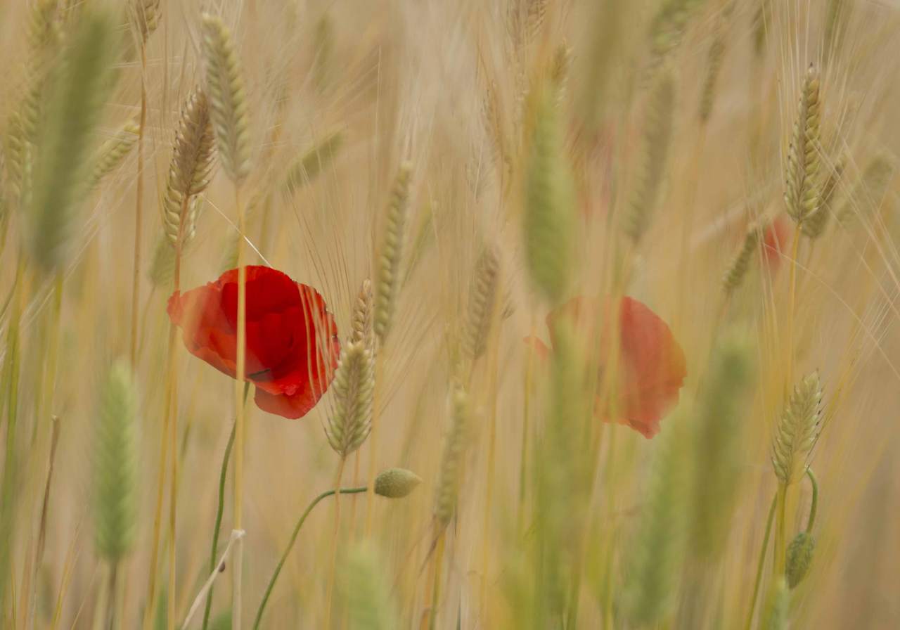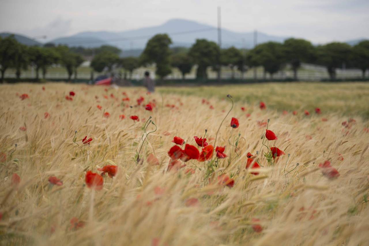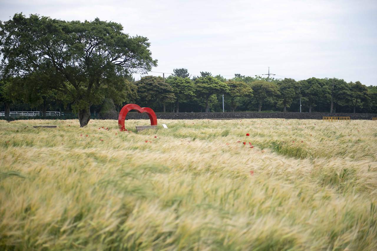 왜 관광지의 보리밭에는 꼭 양귀비가 있을까? 이곳에도 때늦은 양귀비가 보리와 함께 이리저리 흔들리고 있다. 누런 보리 물결 속에서 화려한 양귀비가 수줍은 듯 살짝 얼굴을 보여 준다.