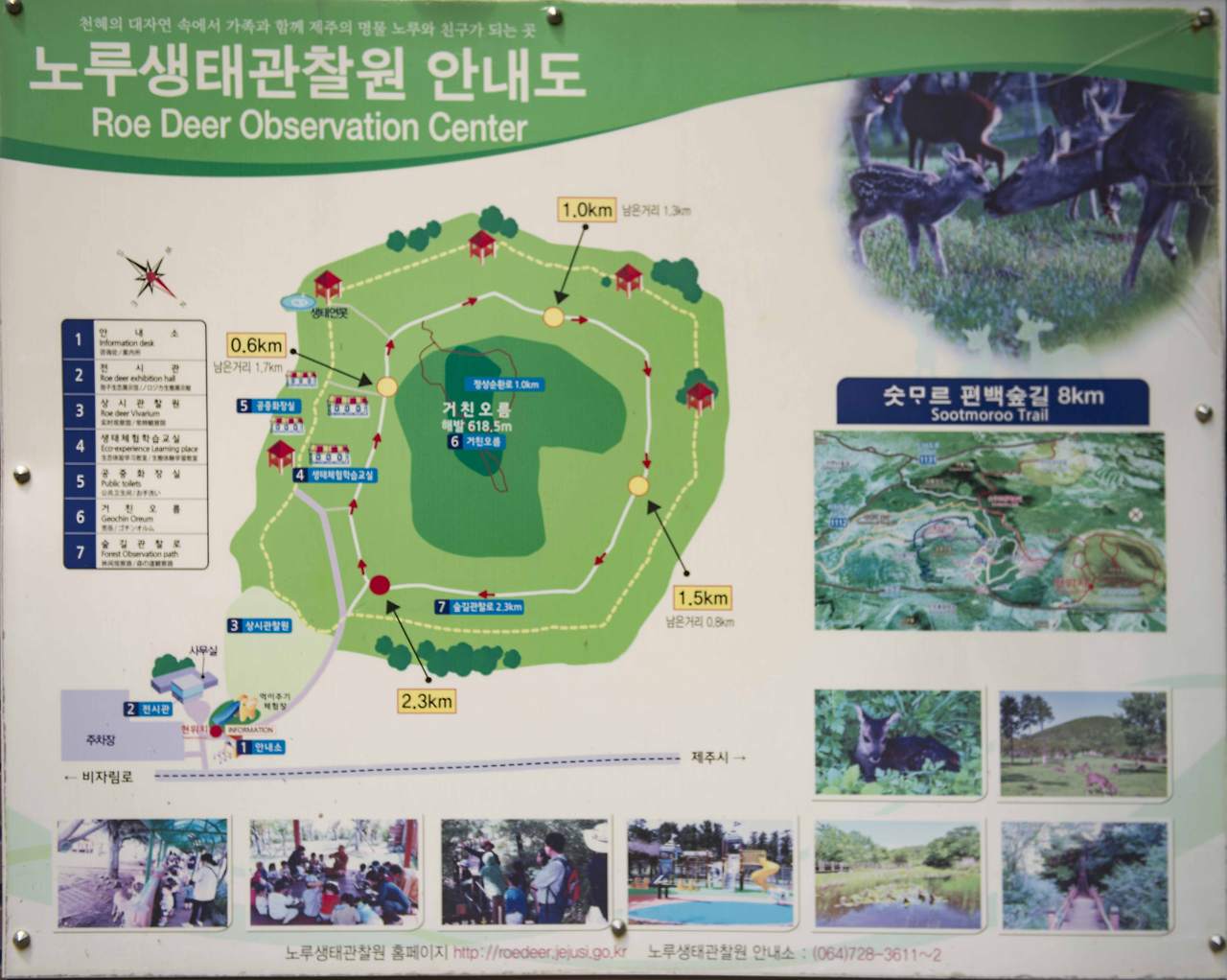 제주도를 관광하다 보면 숲 속이나 어두워지는 저녁 무렵 중산간 도로에서 불쑥 튀어나오는 노루를 자주 보게 된다. 그러나 워낙 바람처럼 달려가기에 그 모습을 제대로 보기가 어려운데 그 노루와 가까이에서 눈높이를 맞출 수 있는 곳이 절물 자연휴양림 근처에 있는 노루생태 관찰원이다.