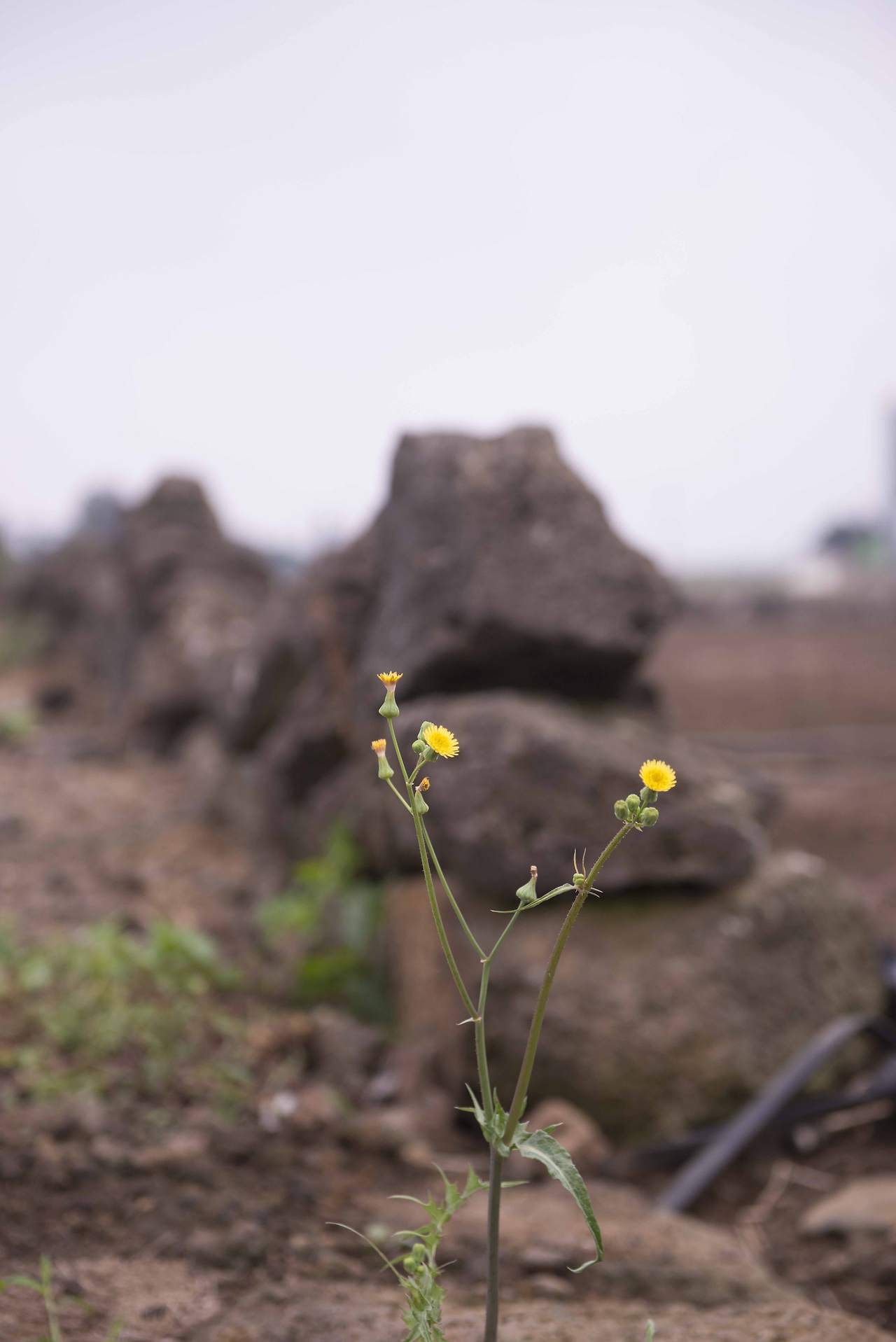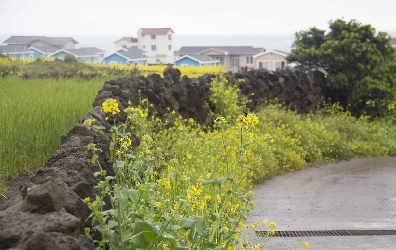 까만 돌담이 있어 돋보이는 봄 풍경