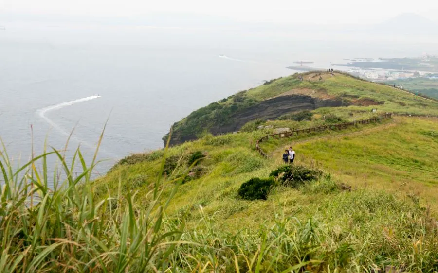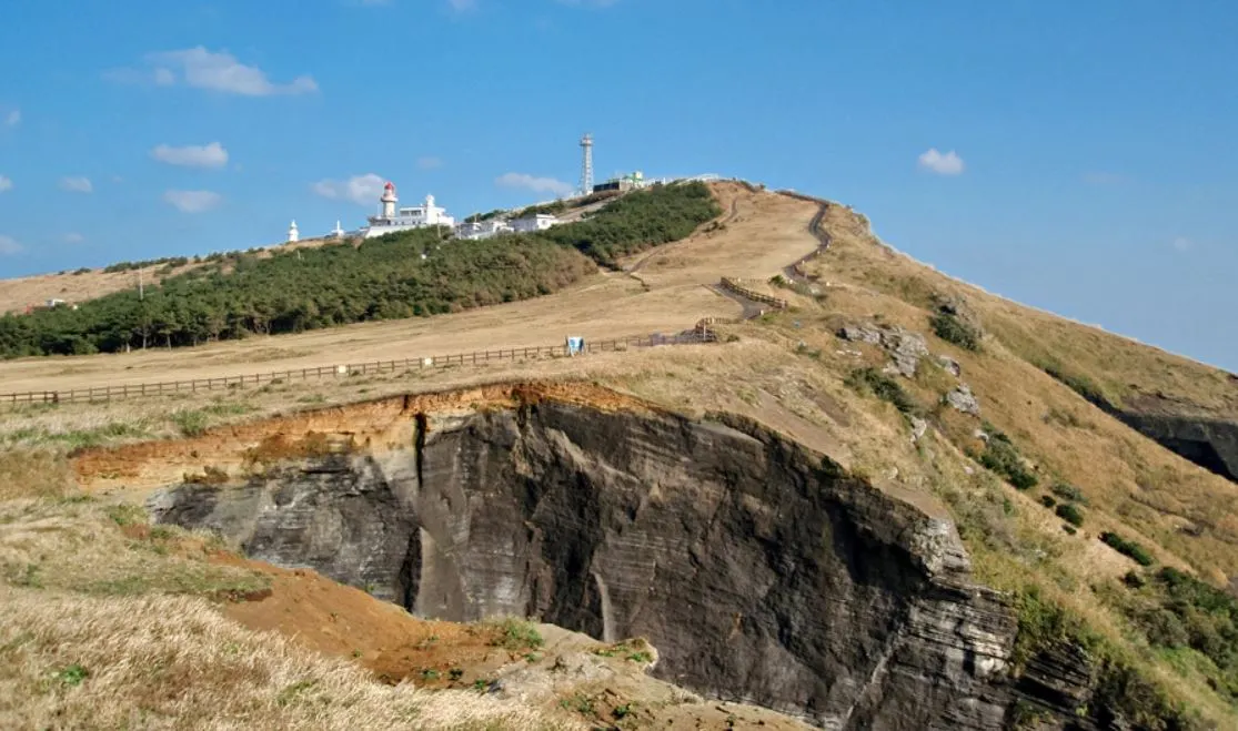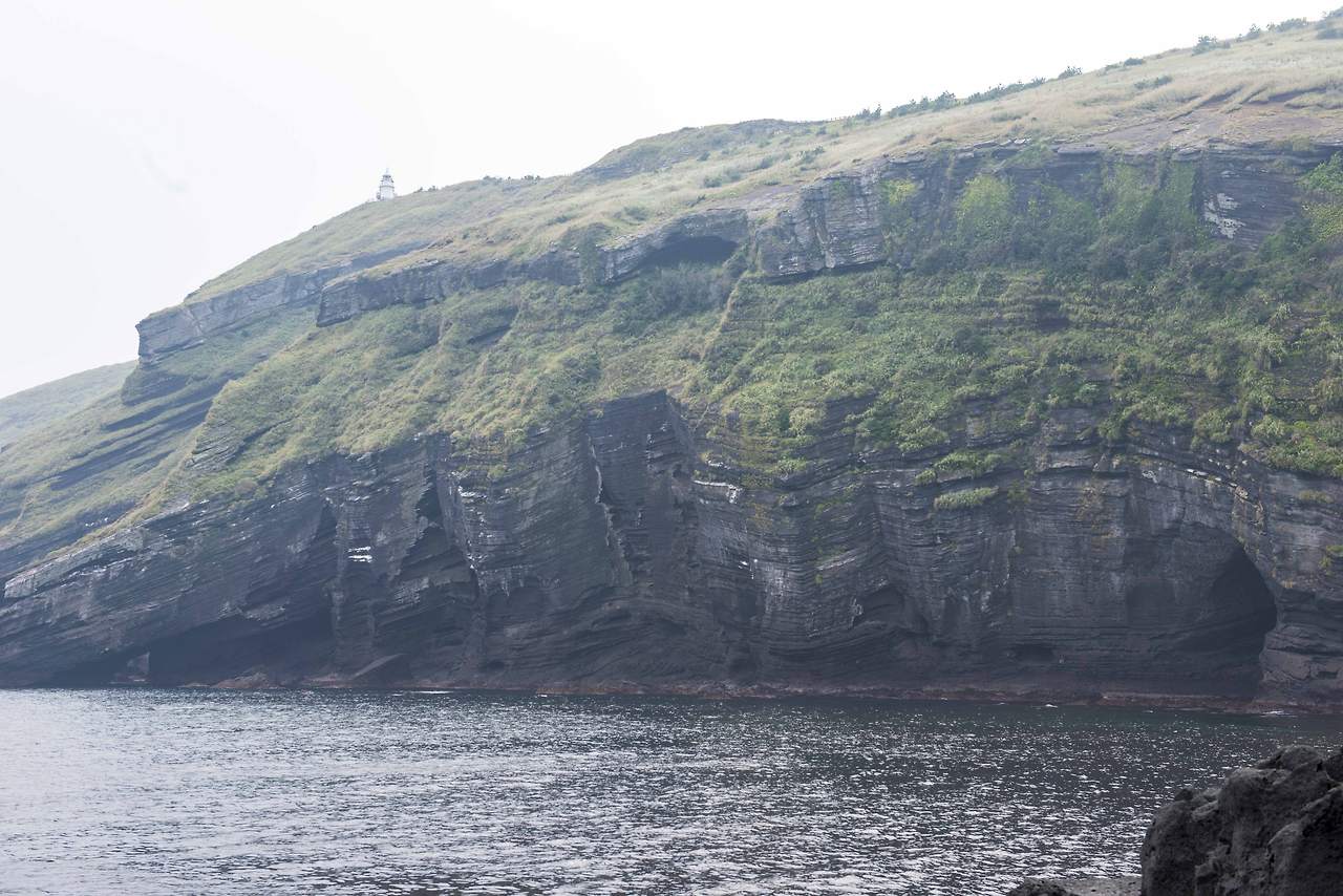 우도등대까지 오르는 길이 살짝 가파르기는 해도 한걸음 한걸음 옮길 때마다 탄성을 지르게 하는 깎아지른 절벽의 기이한 모습과 시원한 바다 풍경 또 가쁜 숨을 몰아쉬며 뒤돌아 보는 푸른 초원은 무조건 엄지 척할 수밖에 없다.