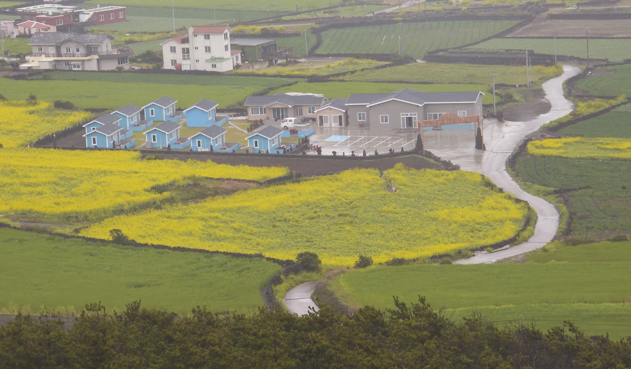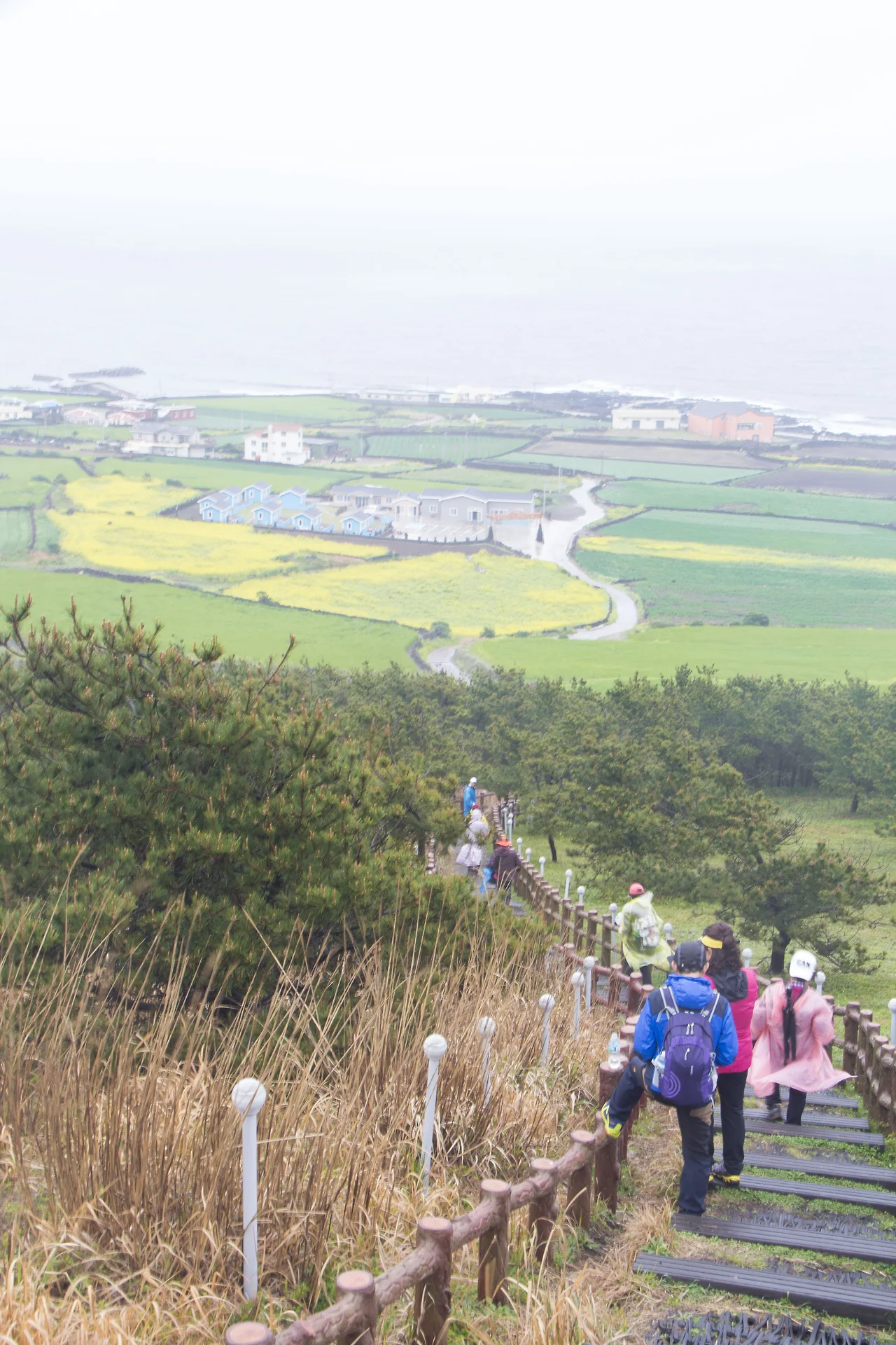 정상에서 내려다 보는 풍경이 유채꽃 덕분에 동화마을 같다
