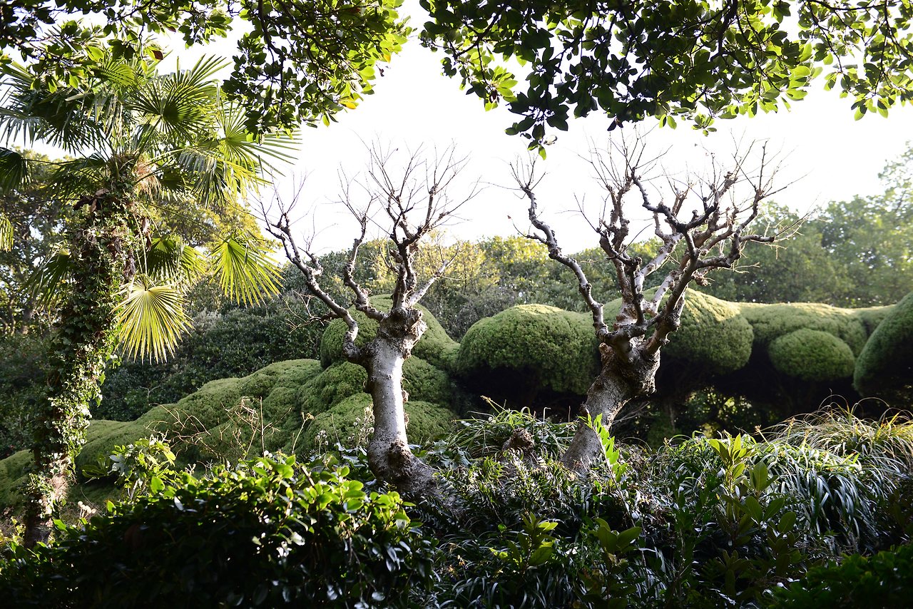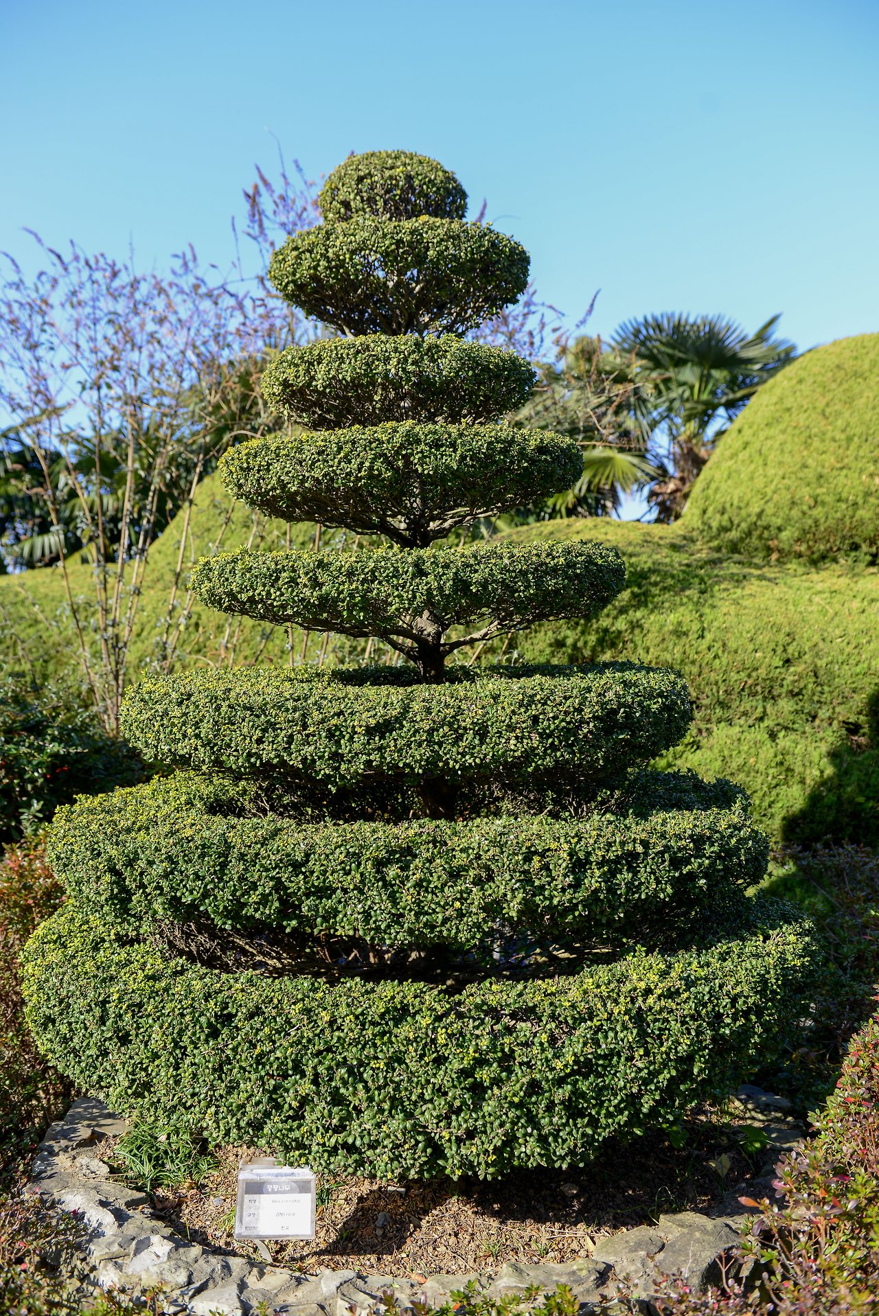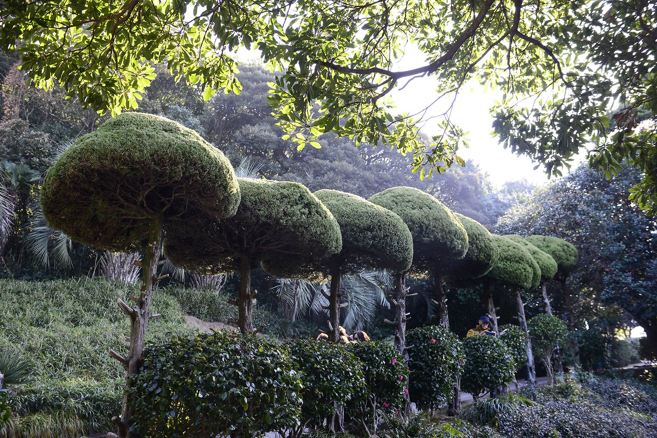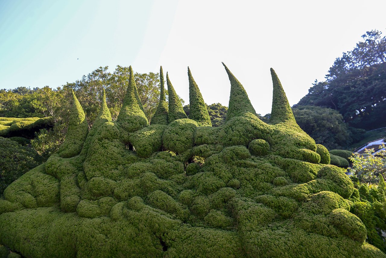 기묘하게 가꾸어진 향나무는 백설공주와 일곱 난장이가 연상된다