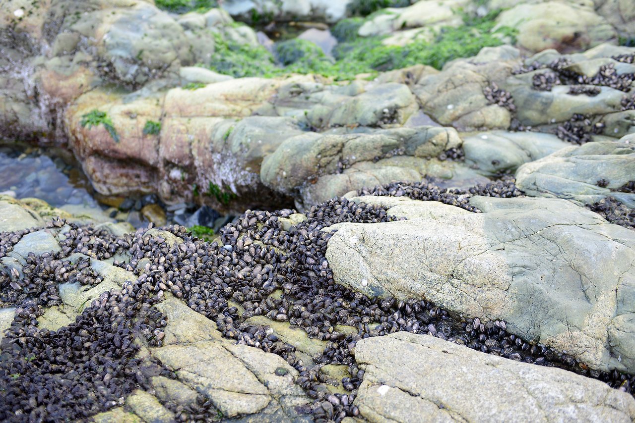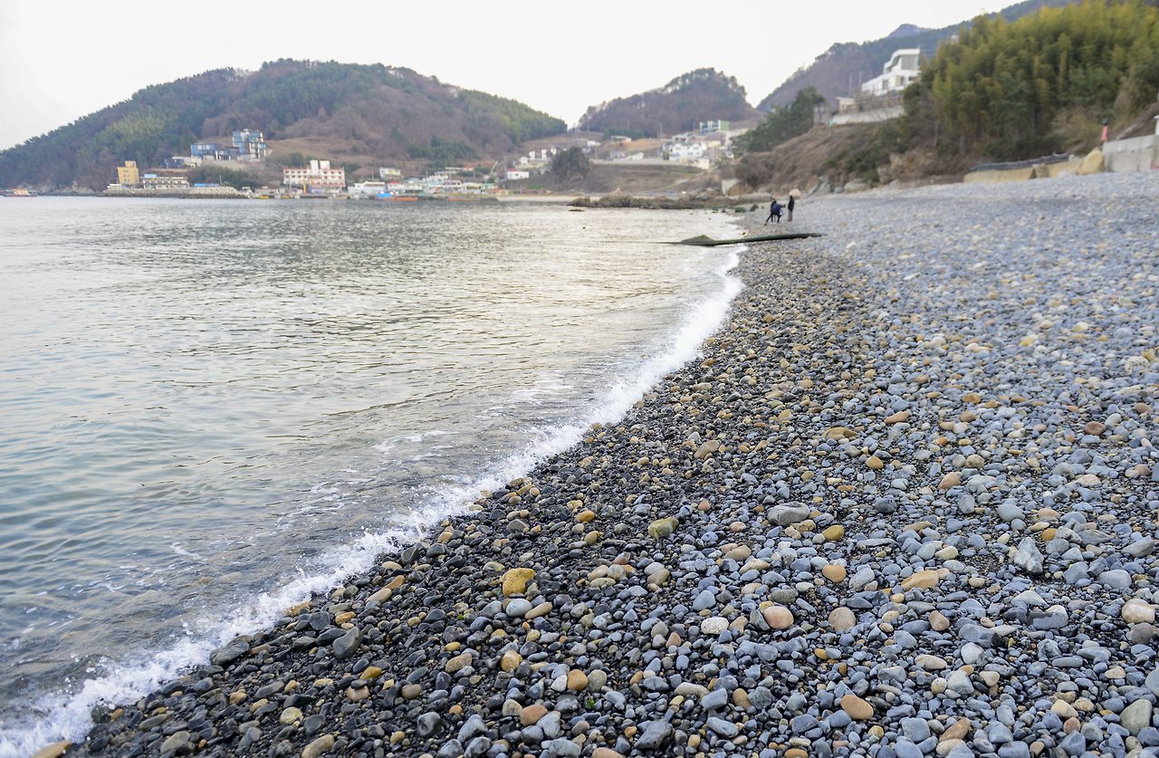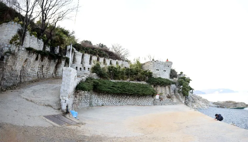 성 아래 해변에는 몽돌이 가득하다. 찰랑거리는 파도 소리를 들으며 산책을 즐기다 보면 멀리 거가대교가 보이고 발아래 바위에 다닥다닥 붙어있는 것은 거북손? 우와~