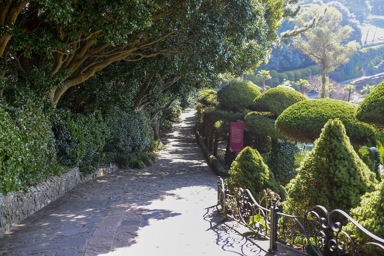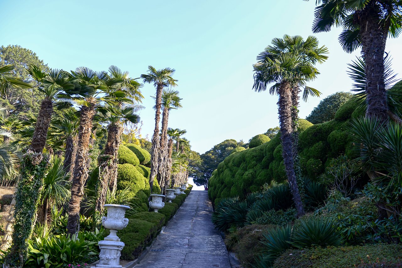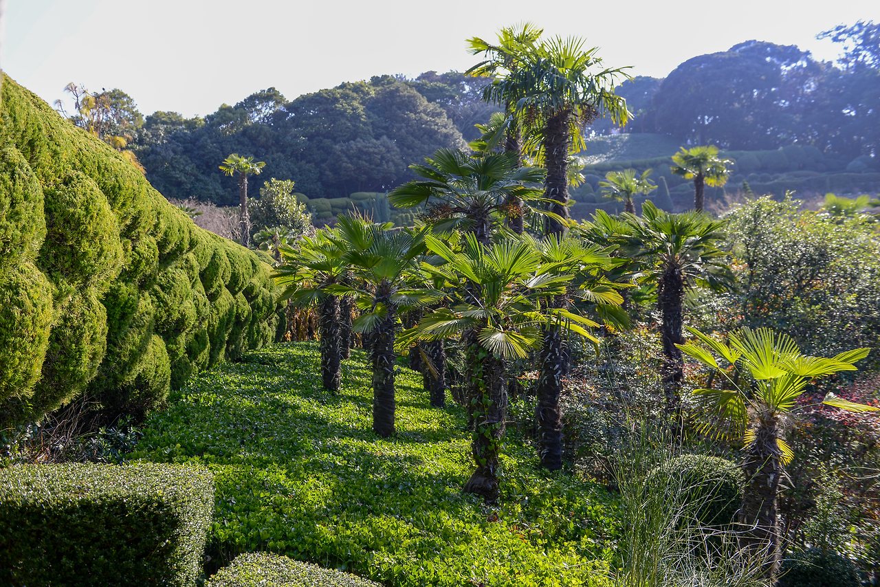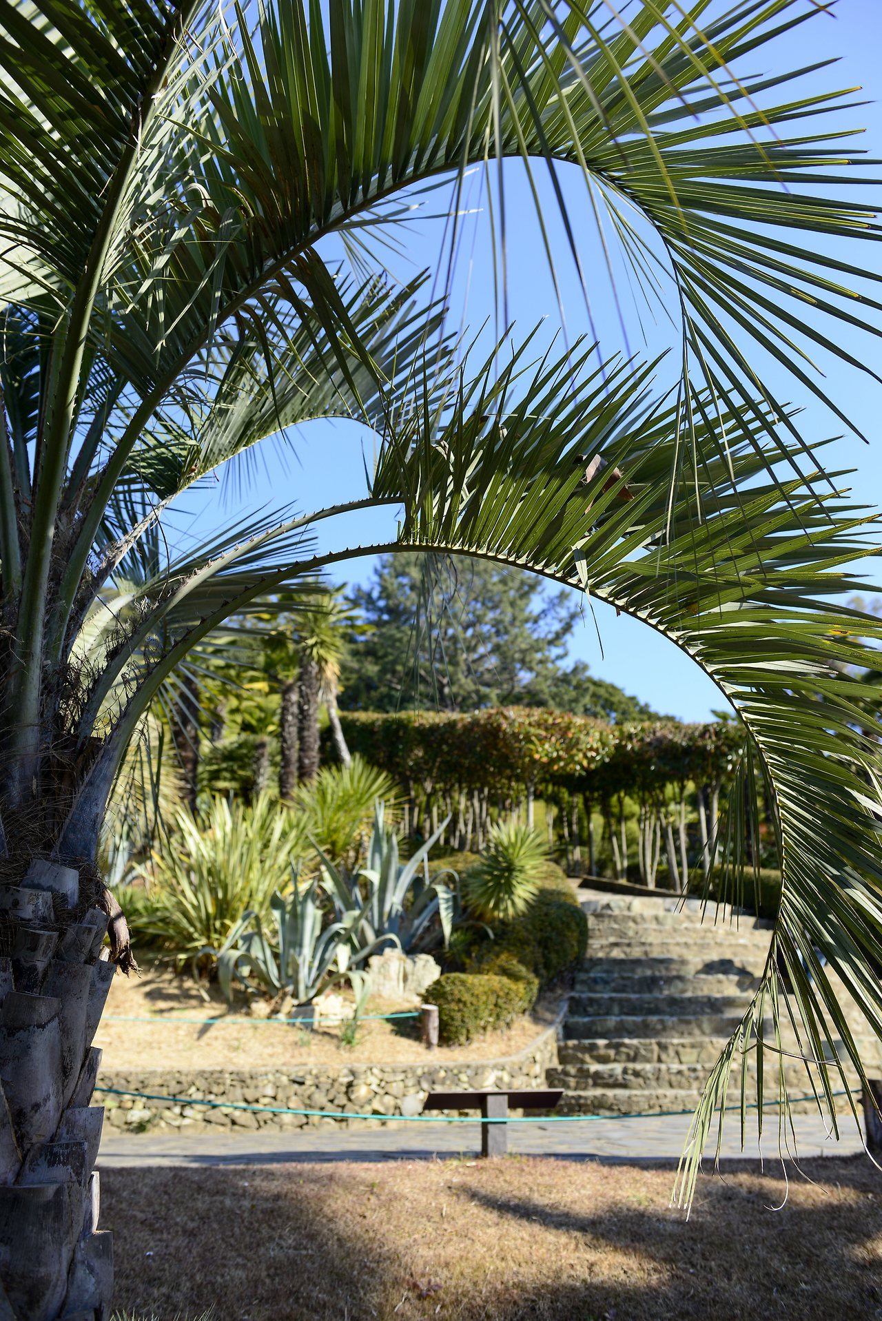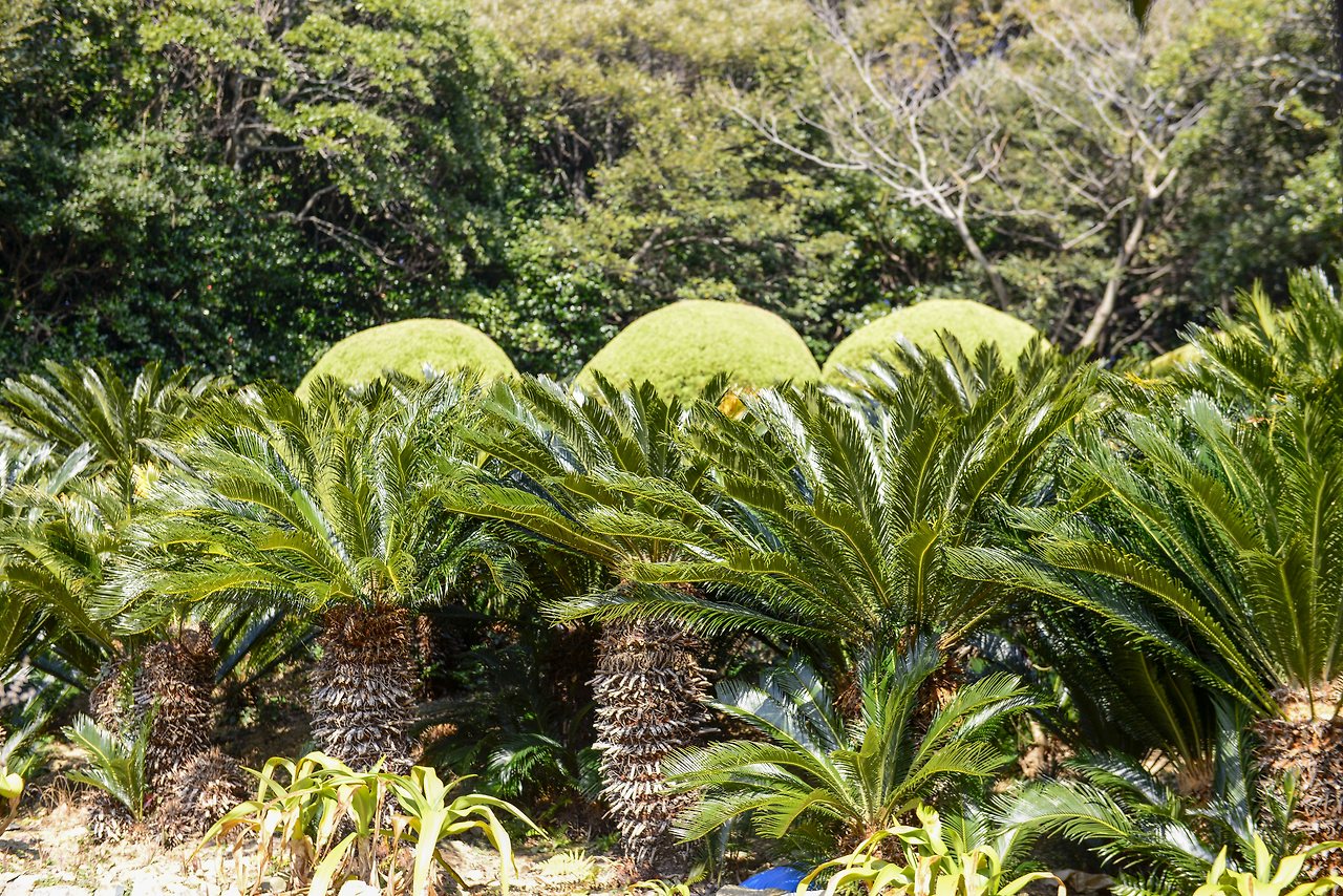 키 큰 야자수 아래 아열대 식물로 가득한 코카스 가든의 오르막길은 특히나 남국의 정취가 느껴진다. 아직 동백꽃이 많이 피지는 않았으나 꽃이 피면 더욱 화려해질 게다. 두 부부의 피땀으로 이뤄진 경관이기에 더욱 경이롭다.