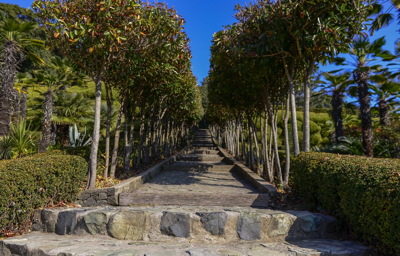 정상까지 길게 이어진 천국의 계단 또한 인생 샷을 건질 수 있는 포토존이다. 좌우의 나무 사이로 보이는 아열대 식물과 아침 햇살에 반짝이는 선인장까지 단아한 모습이 싱그럽다.