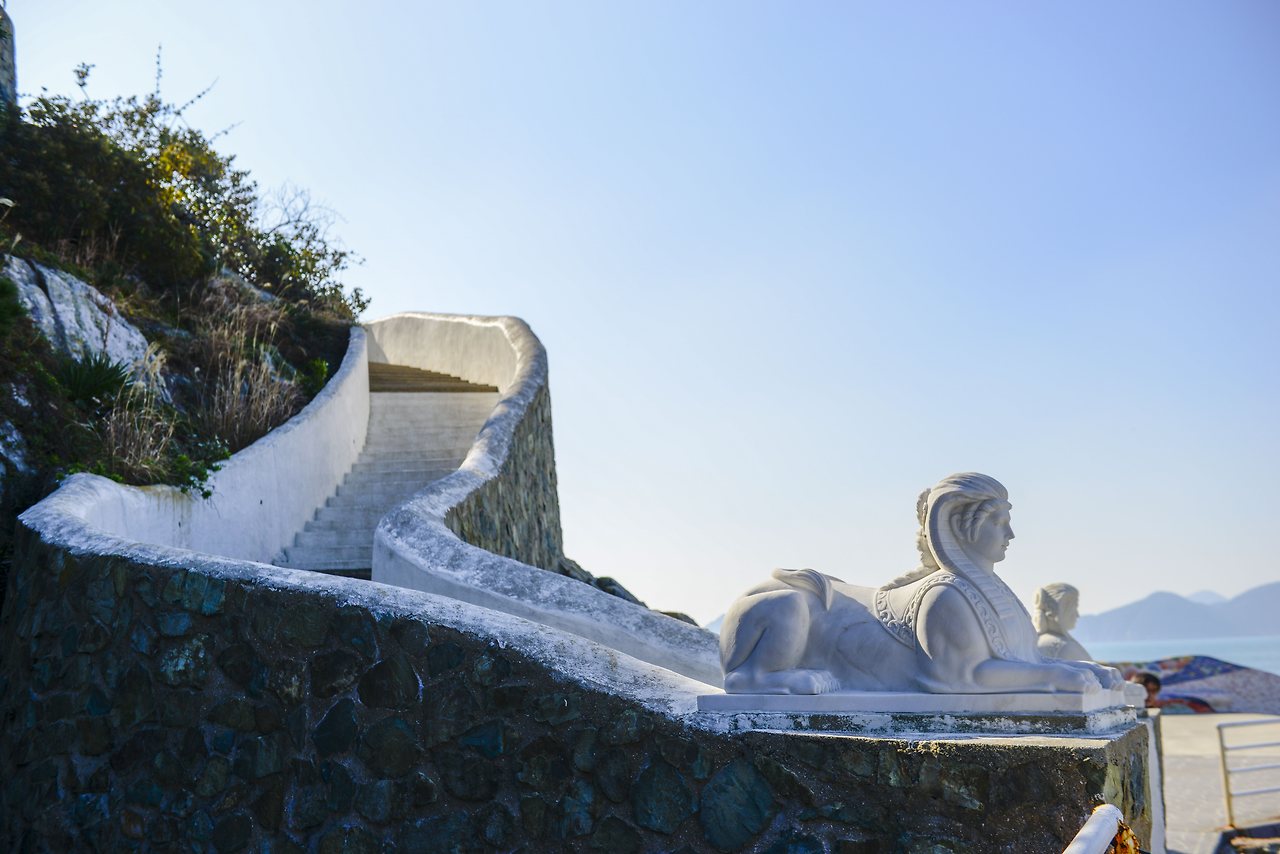 아름다운 바닷가에 그림같이 서있는 매미 성은 어느새 입소문이 나서 주차장도 화장실도 갖춘 데다 주차요원까지 있는 관광지가 되었다. 몇 개의 포토존 앞에서는 커플들이 인생 샷을 담기 위하여 길게 줄을 서서 기다려야만 한다. 소중한 개인 소유지를 맘껏 관람할 수 있게 해주는 쥔장이 고맙다.