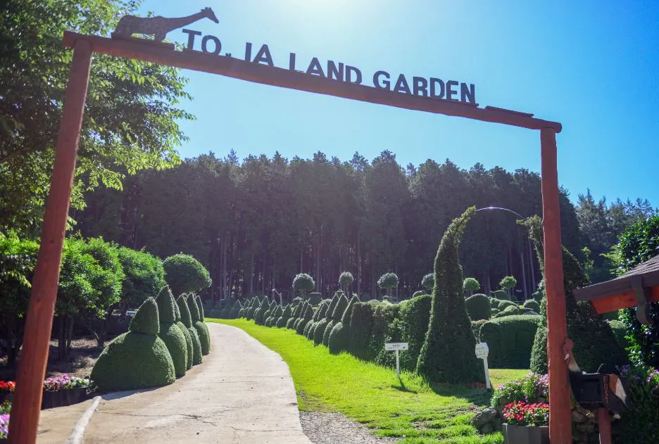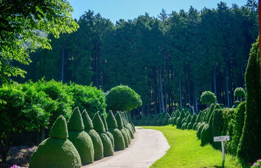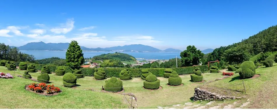 해바리 마을에서 마늘밭과 유자 밭을 지나 만난 토피아 랜드는 또 한 번 나를 놀라게 했다. 다양한 테마로 섬세한 작업을 통해 만들어진 토피어리가 한두 개가 아니다. 귀엽고 앙증맞은 작품들을 만들고 유지해 온 쥔장의 손길이 느껴졌다. 특히 편백나무 숲으로 오를수록 펼쳐지는 남해바다의 전경은 그저 따봉이다.