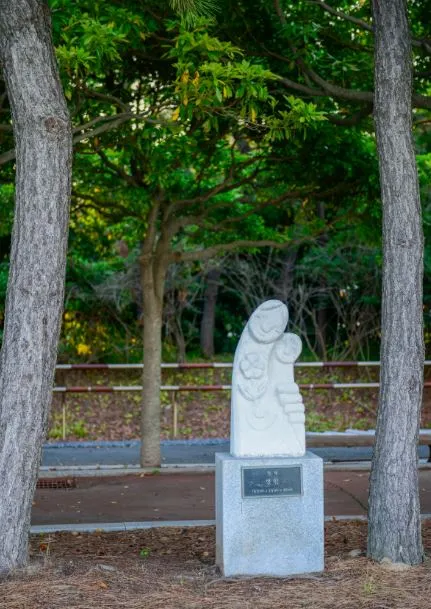 스포츠파크 환경조각 길에는 남해 정서를 담은 조각 작품들이 전시되어 있다.