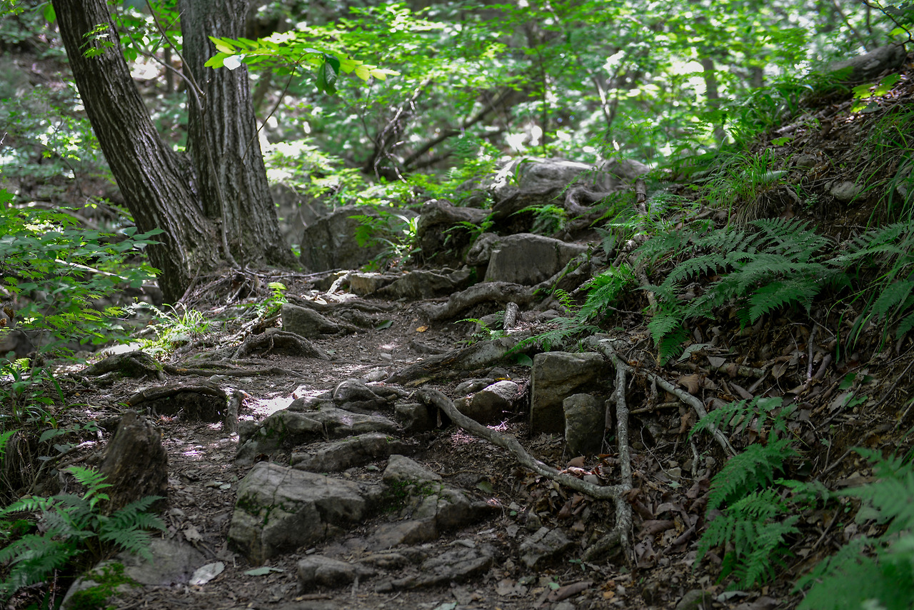 등산이 초보인 나는 계곡이라는 말에 시원한 물소리를 들으며 나무데크나 야자매트가 깔린 길을 사부작사부작 걸으리라 생각했다. 그러나 유명산 계곡길은 자연 그대로 굴러온 돌덩이 사이에 만들어진 길이기에 그다지 쉬운 길이 아니다.