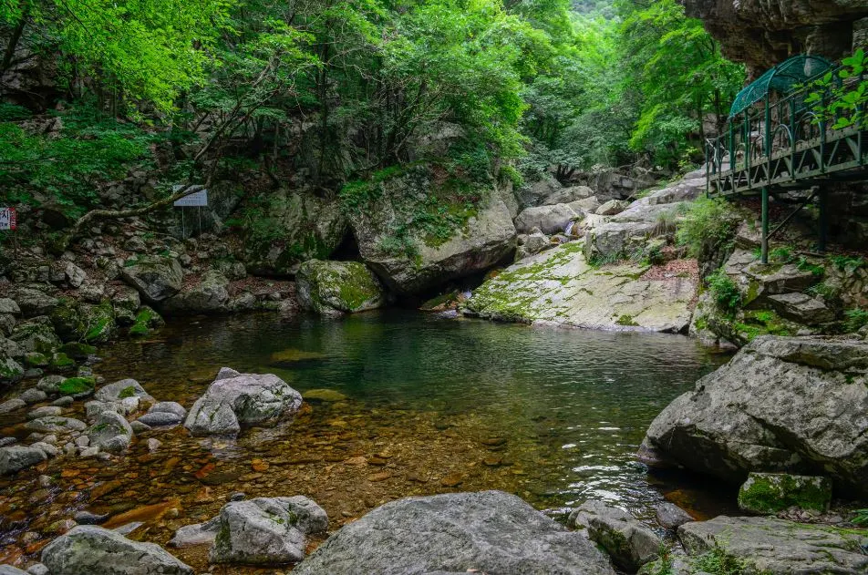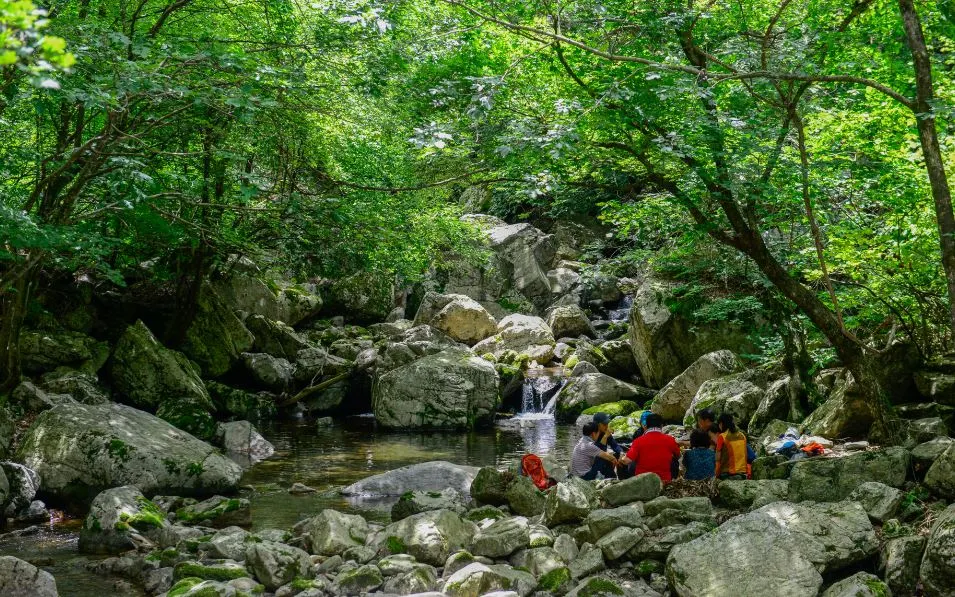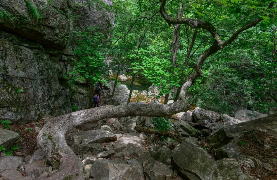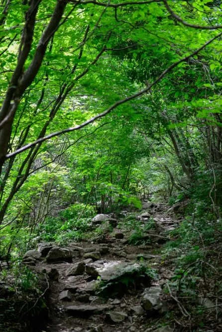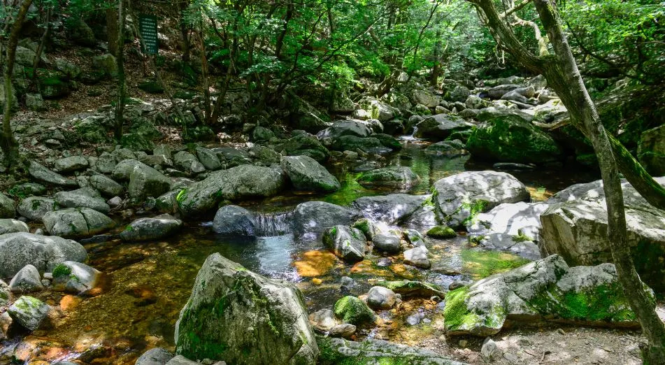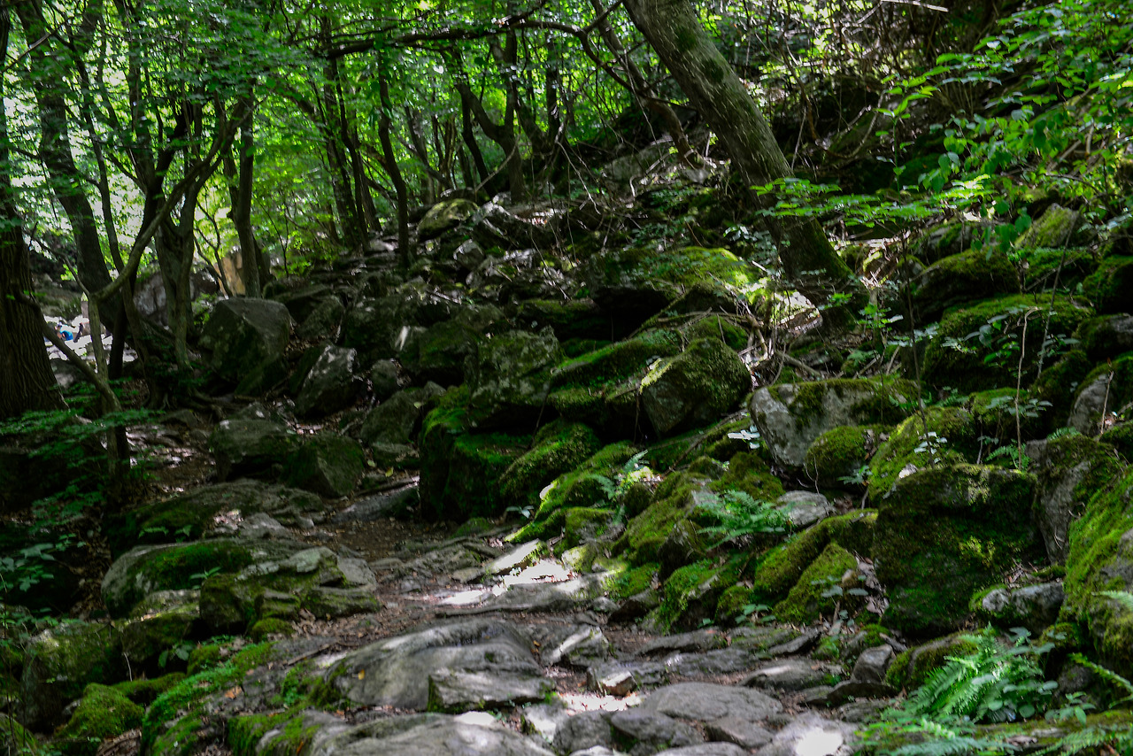 산꼭대기부터 굴러온 바위가 제멋대로 널브러진 계곡에 하필이면 바위에 뿌리를 내려버린 나무들은 위태롭게 바위를 감싸 안은 채 살아가고 있다. 물소리 때문인지 더욱 상큼해 보이는 푸른 이끼와 울창한 숲 사이로 스며든 햇살 덕에 울창한 숲이 한층 싱그럽다.