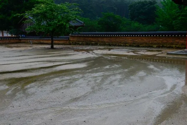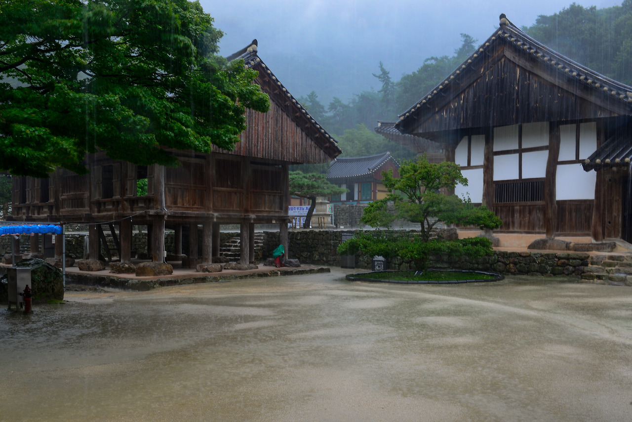 주차장에 내렸을 때만 해도 멀쩡하던 하늘은 갑자기 엄청난 비를 쏟아 붓기 시작했다. 우산 하나 챙겨 오지 않은 우리는 생각지도 않게 오랫동안 산사에 머물게 되었다. 쨍쨍한 해를 본 날이 며칠이나 있었을까? 어느새 여름은 가고 가을이 성큼 와버렸다.