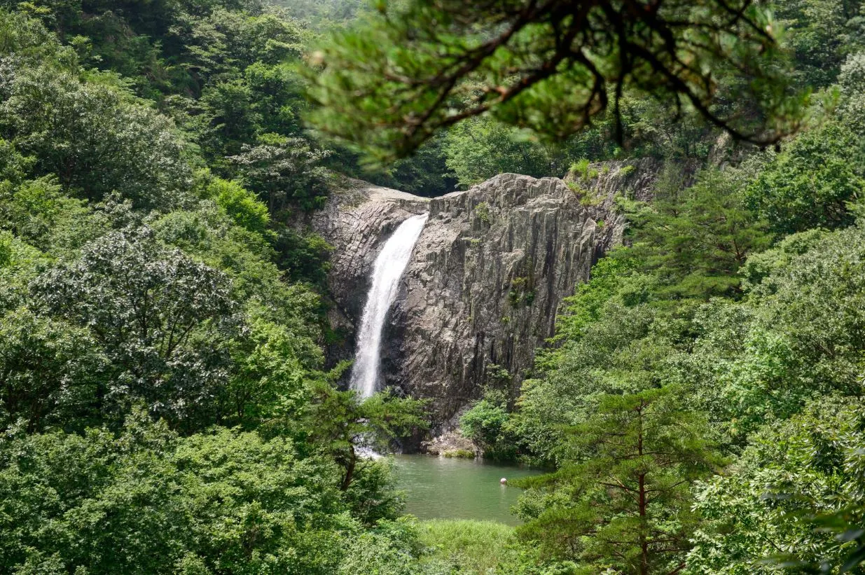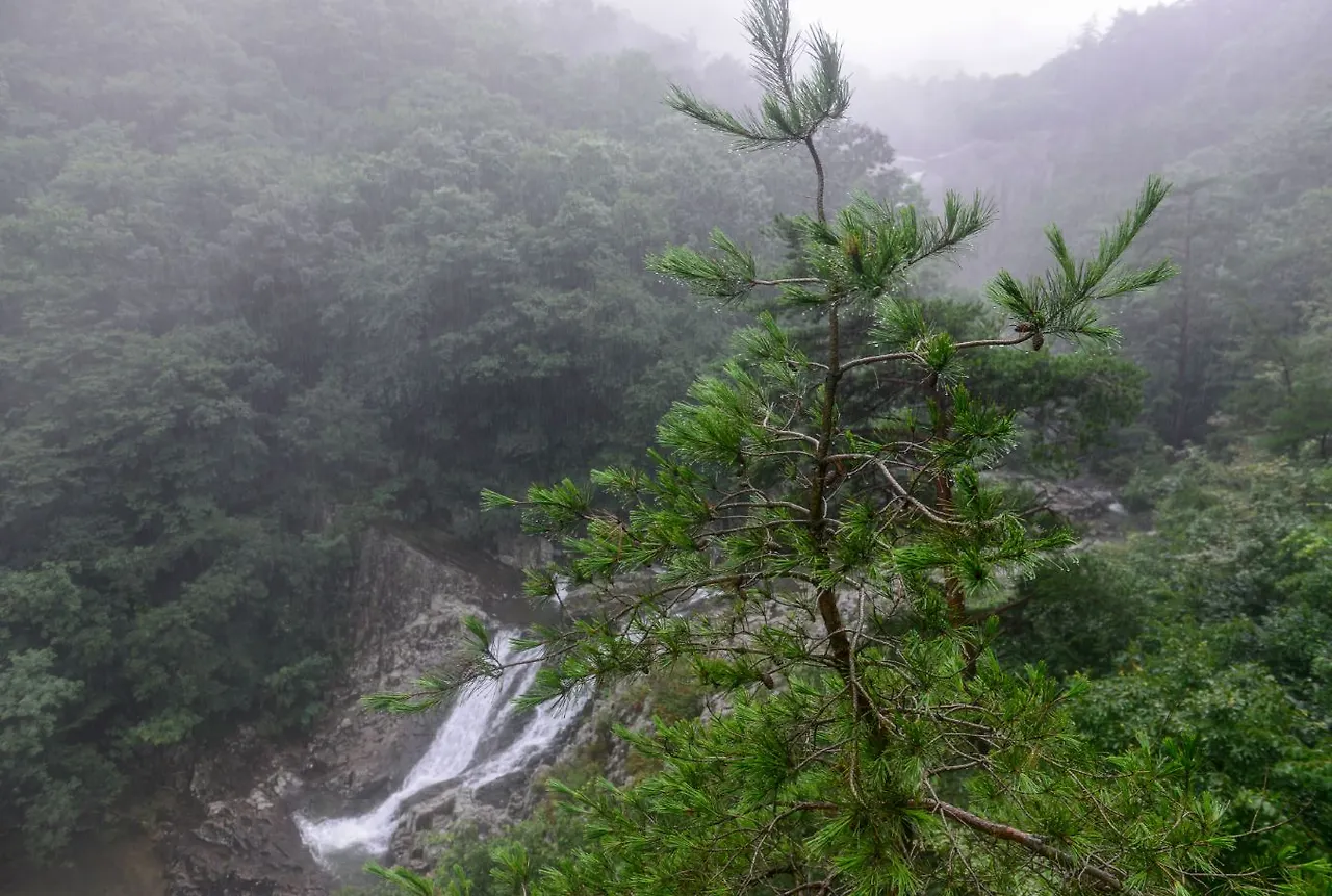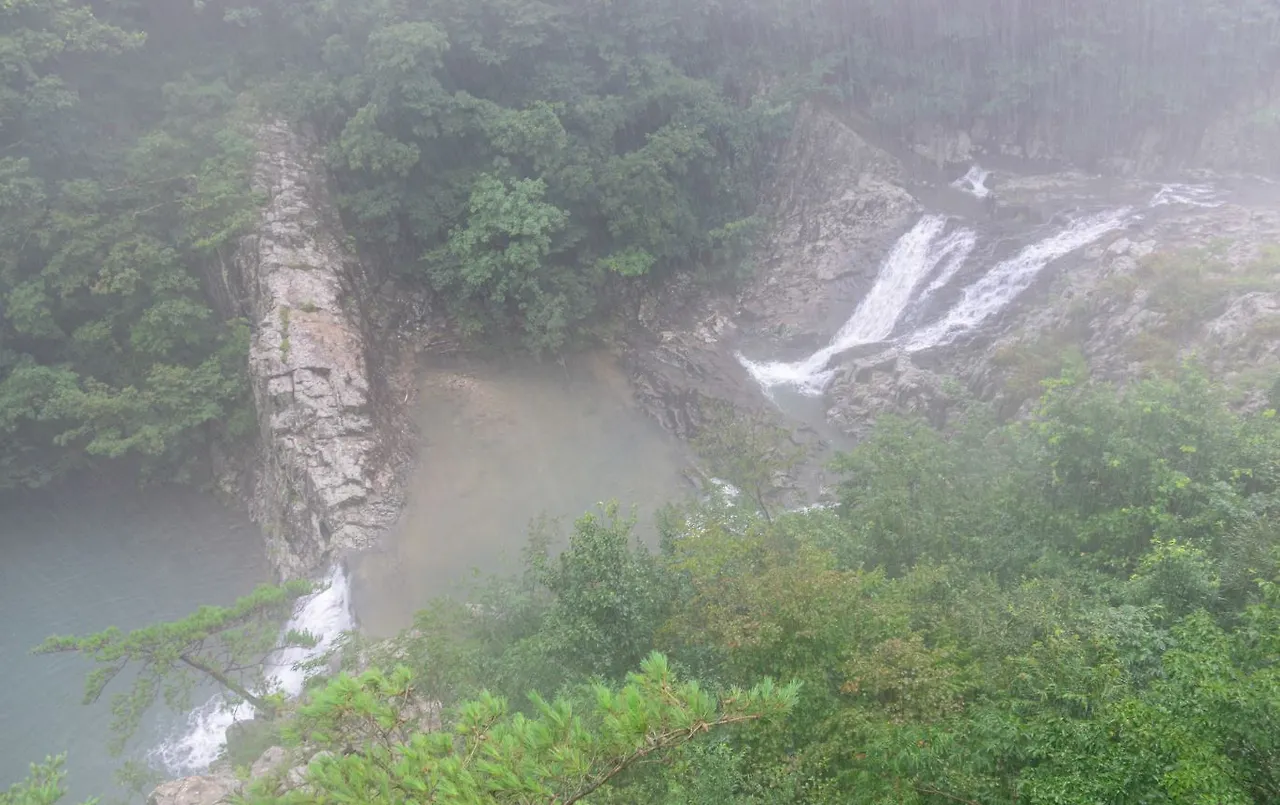 드디어 제2 계곡인 직소폭포에 도착했다. 잠시 그친 비 덕분에 또렷하게 보이는 폭포는 30여 미터 아래의 둥근 연못으로 떨어지며 우렁찬 소리를 내며 산속의 정적을 깨고 있다.