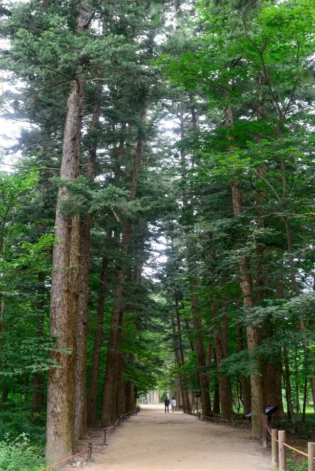 내소사에서 직소폭포로 넘어가려 했으나 비 때문에 다음을 기약했다. 비 내리는 전나무 숲 또한 장관이다. 빗소리에 맞춰 몽환적인 숲길로 찰박찰박 걸어가니 마치 꿈길을 걷는 듯하다.