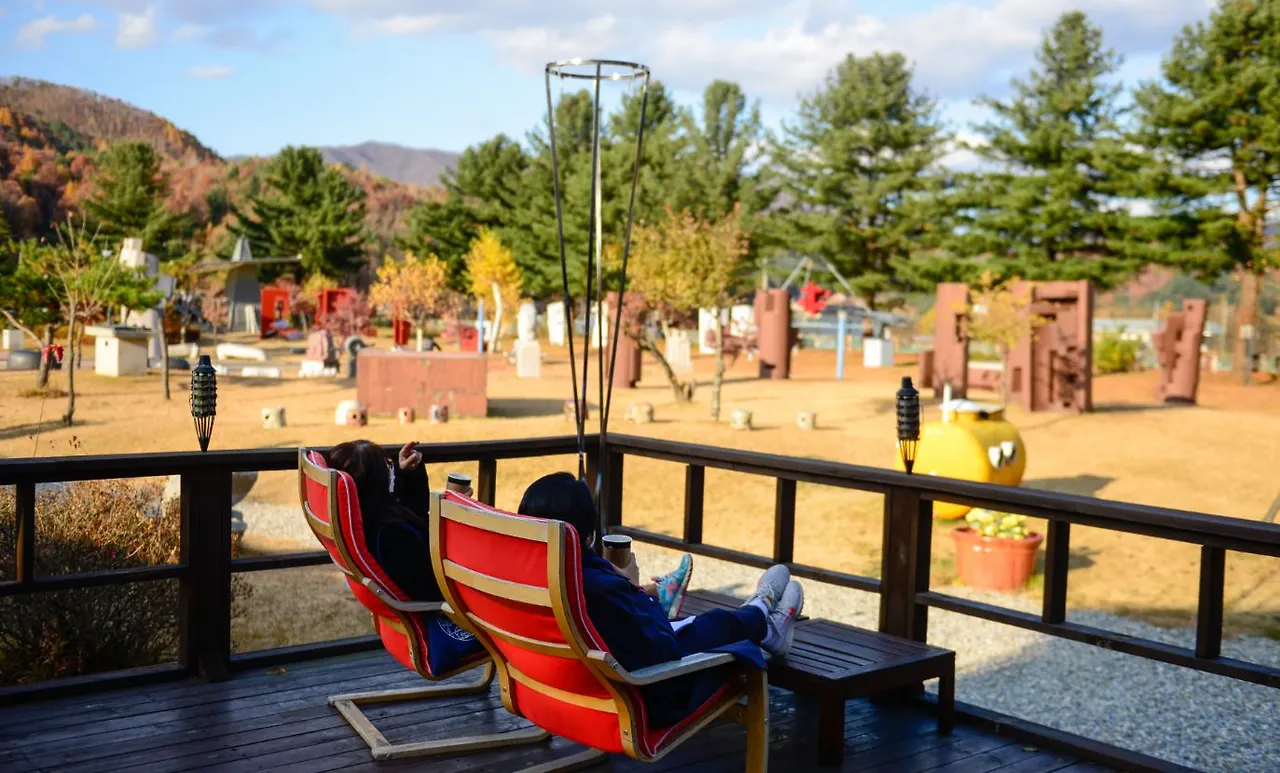 실내의 예술품 관람 후 창문만 열면 조각품이 가득한 운동장이 한눈에 들어오는 카페에서 따뜻한 차 한 잔 하다 보면 불어오는 상쾌한 바람과 함께 실려오는 초등학교적 추억이 뇌리를 스친다.