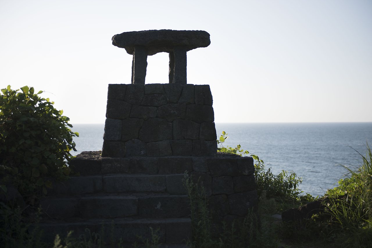 신엄 도대불, 도대불이란 보재기(어부)가 밤중에 고기잡이를 마치고 포구로 돌아올 때 불을 밝혀 안전하게 길잡이 역할을 하였던 옛 등대로 제주도에만 있는 중요한 해양 조형물이다.