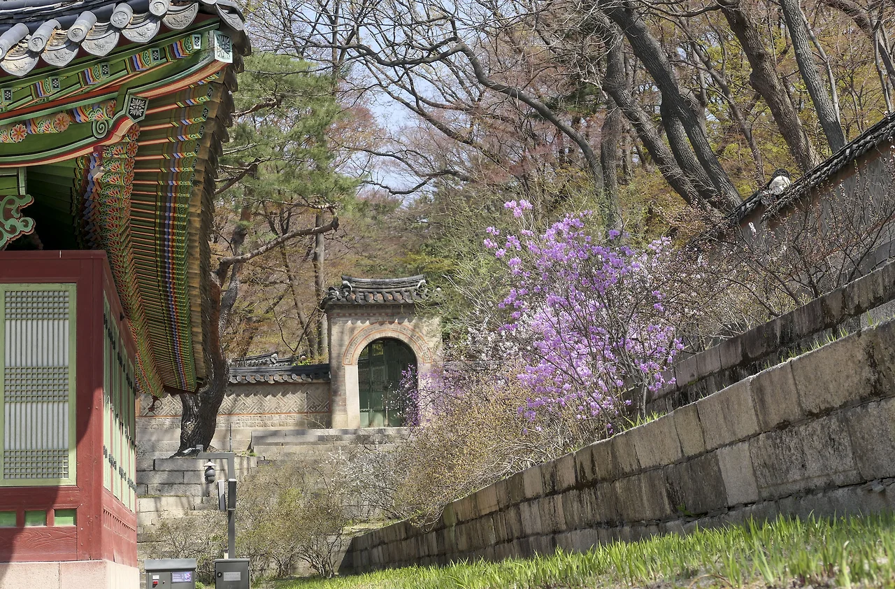 창덕궁은 지금 한창 꽃들이 만개하여 그 어느 때보다 화려한 모습을 보여주고 있다. 홍매화뿐만 아니라 낙선재 쪽 담장 너머로 길게 늘어진 수양벚꽃 개나리 진달래 살구꽃까지 활짝 피어 말 그대로 꽃대궐이다. 다양한 꽃들로 단장한 우리의 고궁은 한층 고풍스럽다.