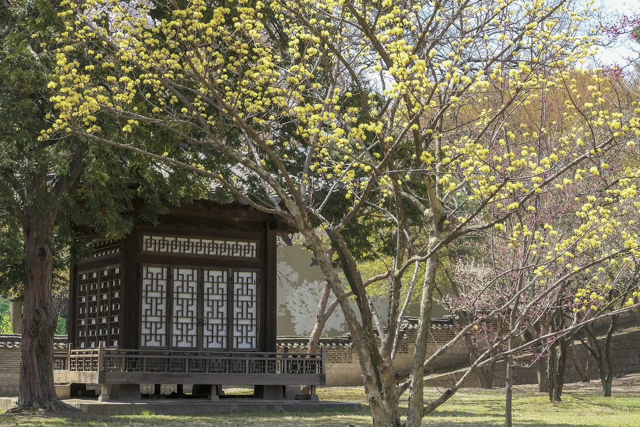 낙선재 쪽에는 창덕궁의 봄을 알리는 일명 핑크 팝콘이라고 부르는 홍매화가 있다. 정말 자세히 보니 팝콘을 닮았다. 산수유와 나뭇가지를 길게 늘어뜨린 수양벚꽃까지 있어 꽃으로만 보면 이곳이 창덕궁에서 가장 아름답다.