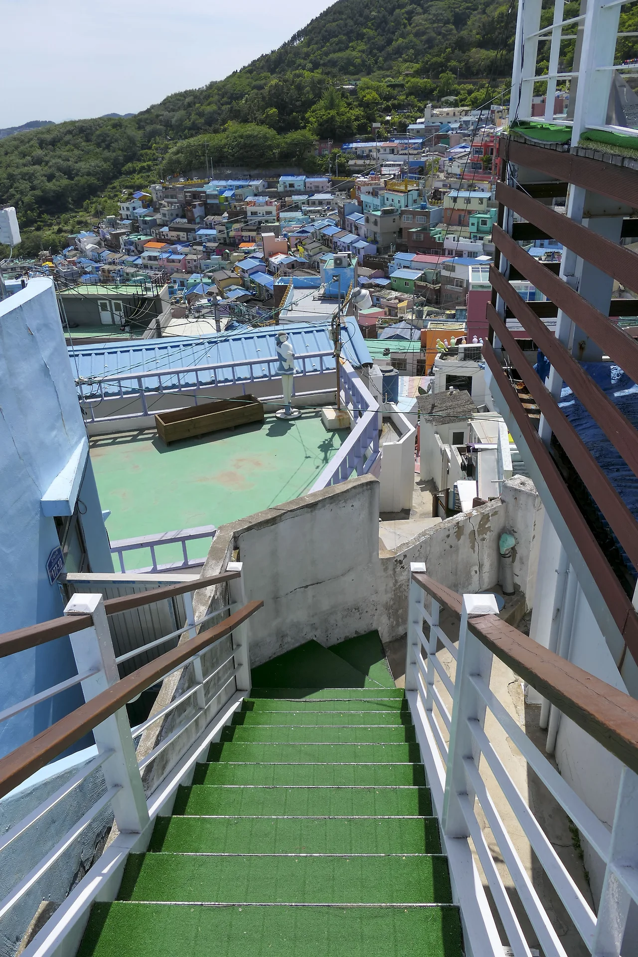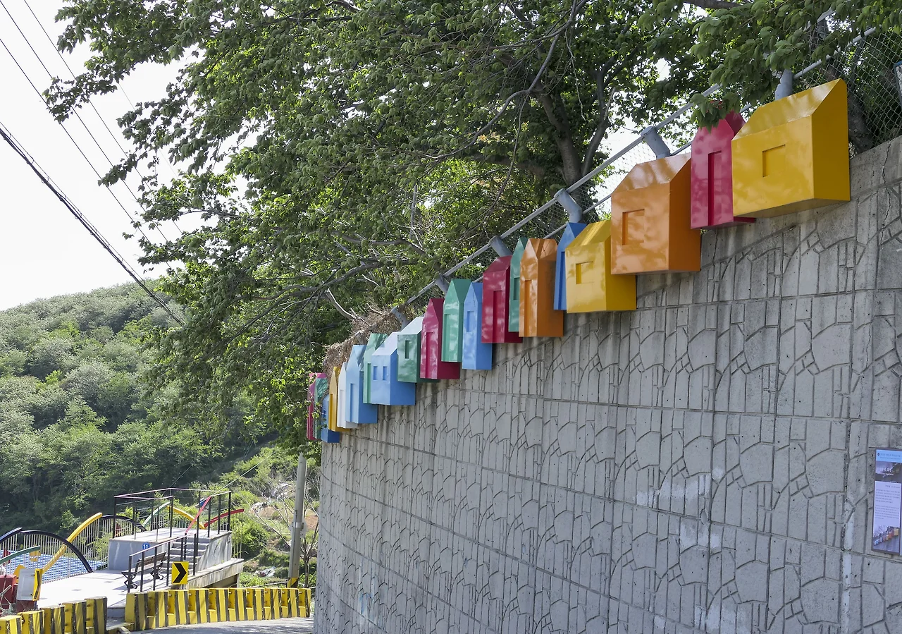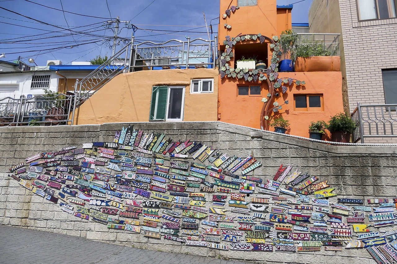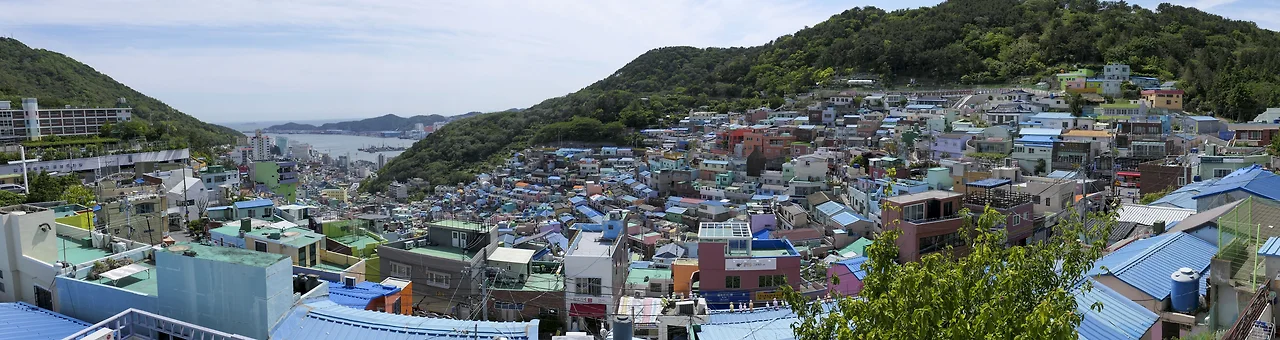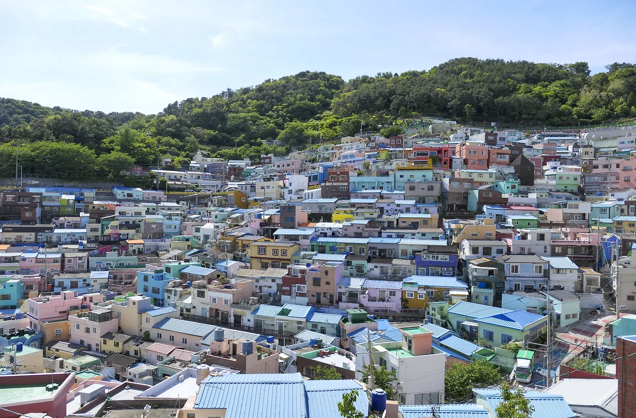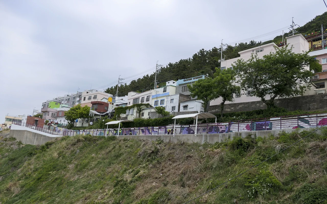 옥녀봉에서 천마산에 이르는 산자락을 따라 질서 정연하게 늘어선 집들은 앞집이 뒷집을 가리지 않도록 계단식으로 지어졌고 높은 건물도 없다. 6.25 때부터 형성된 계단식 주거형태는 피난민 등이 살아온 낙후된 달동네로 주민과 지역 예술가들의 힘으로 감천 문화마을로 변신하였다.