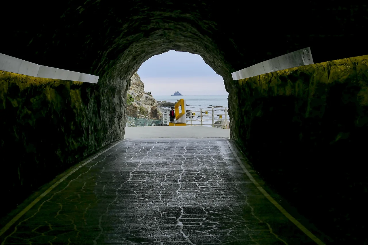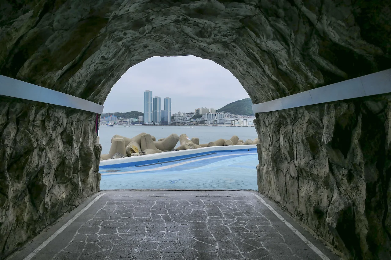 피아노계단과 파도광장 사이 급경사 계단구간을 이용하기 어려운 노약자를 위해 보행 편의로 만들어 둔 해안 터널
