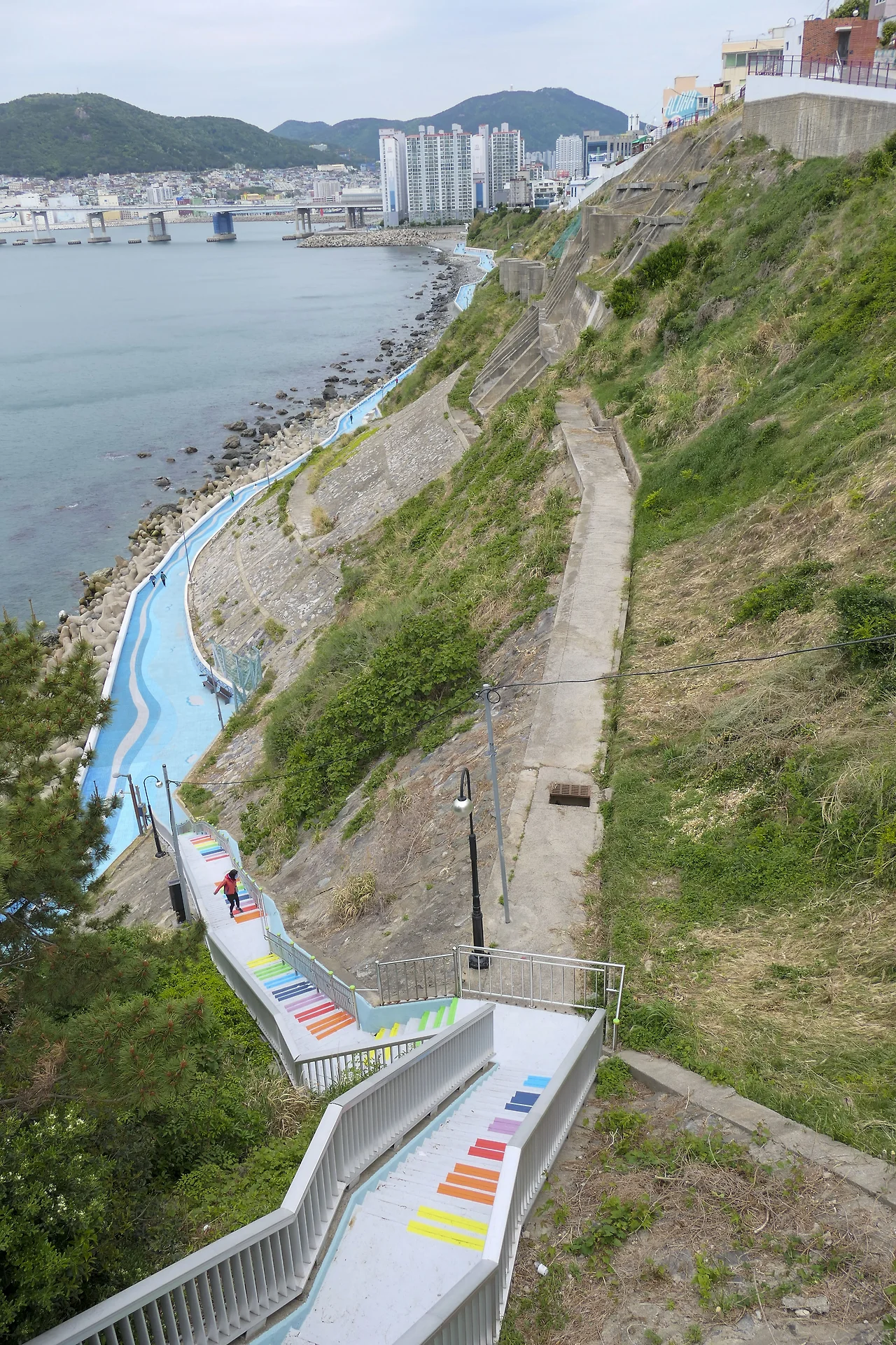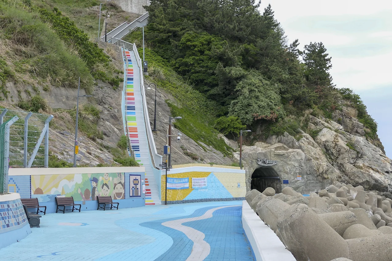 흰여울 마을로 올라가는 피아노 계단과 흰여울 해안터널
