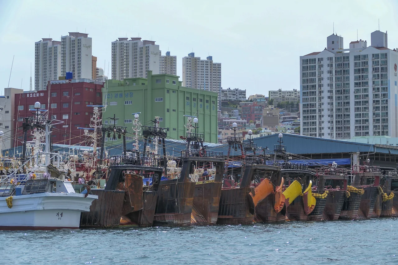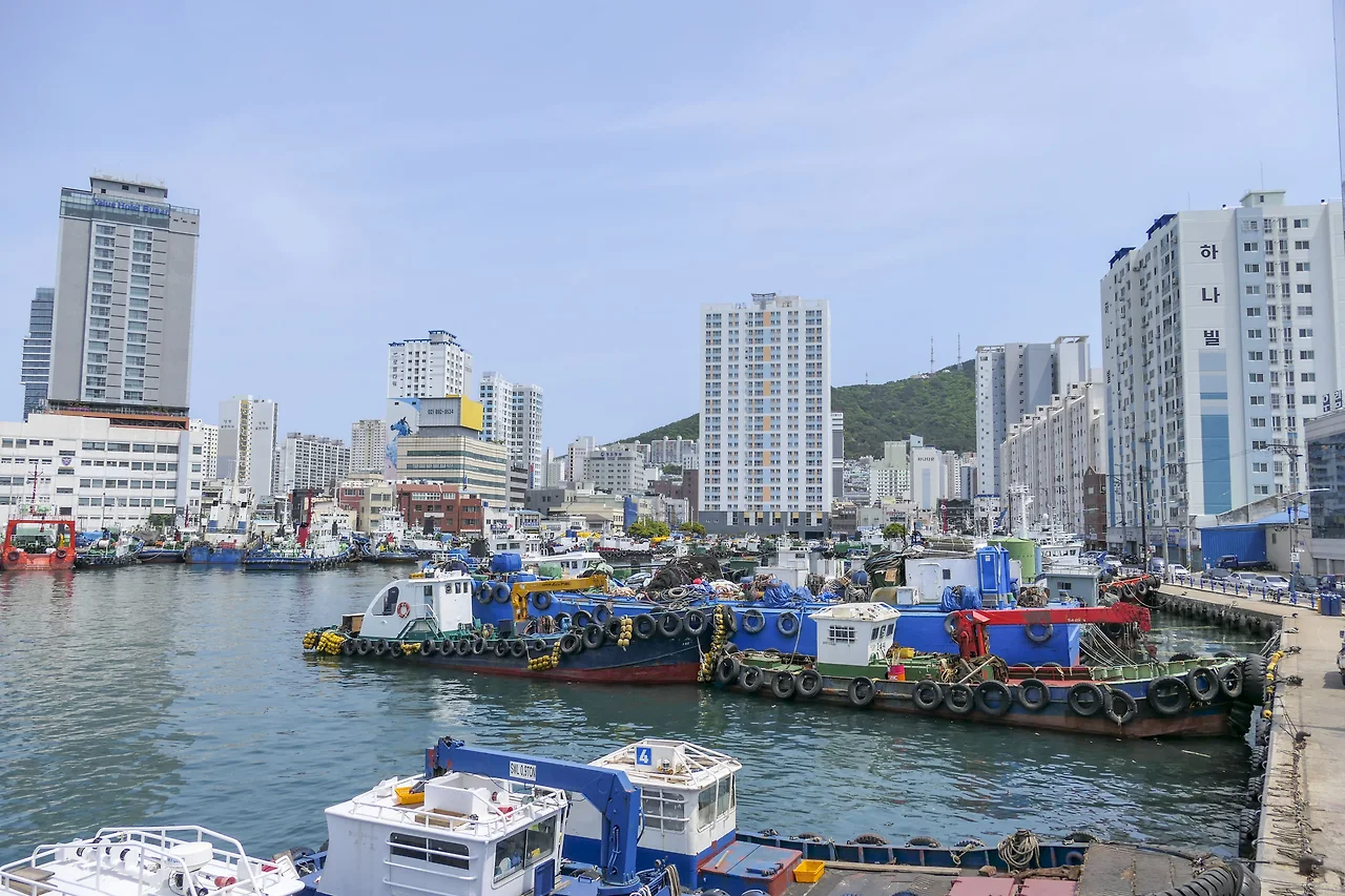 바다 너머에는 대평동과 대조적으로 최근 리모델링하여 커다란 갈매기가 하늘을 나는 모습이 꽤나 이색적인 최신식 건물의 자갈치 시장이 있다.