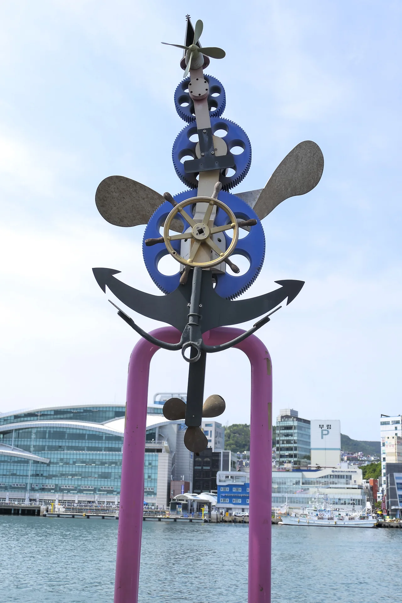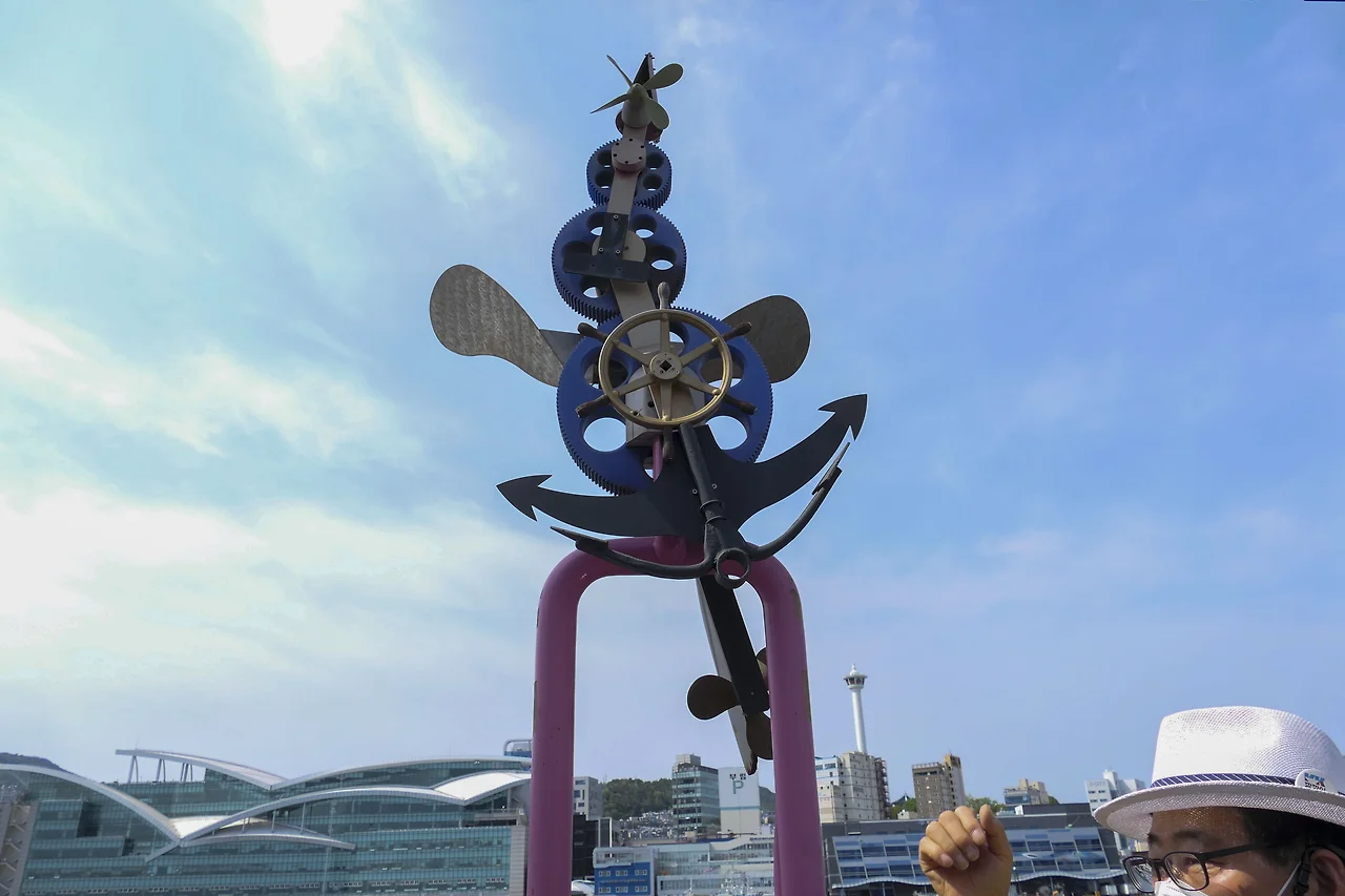 바람이 불면 기어가 서로 맞물리며 저절로 움직이도록 만든 작품으로 깡깡이 마을의 시간과 역사를 표현