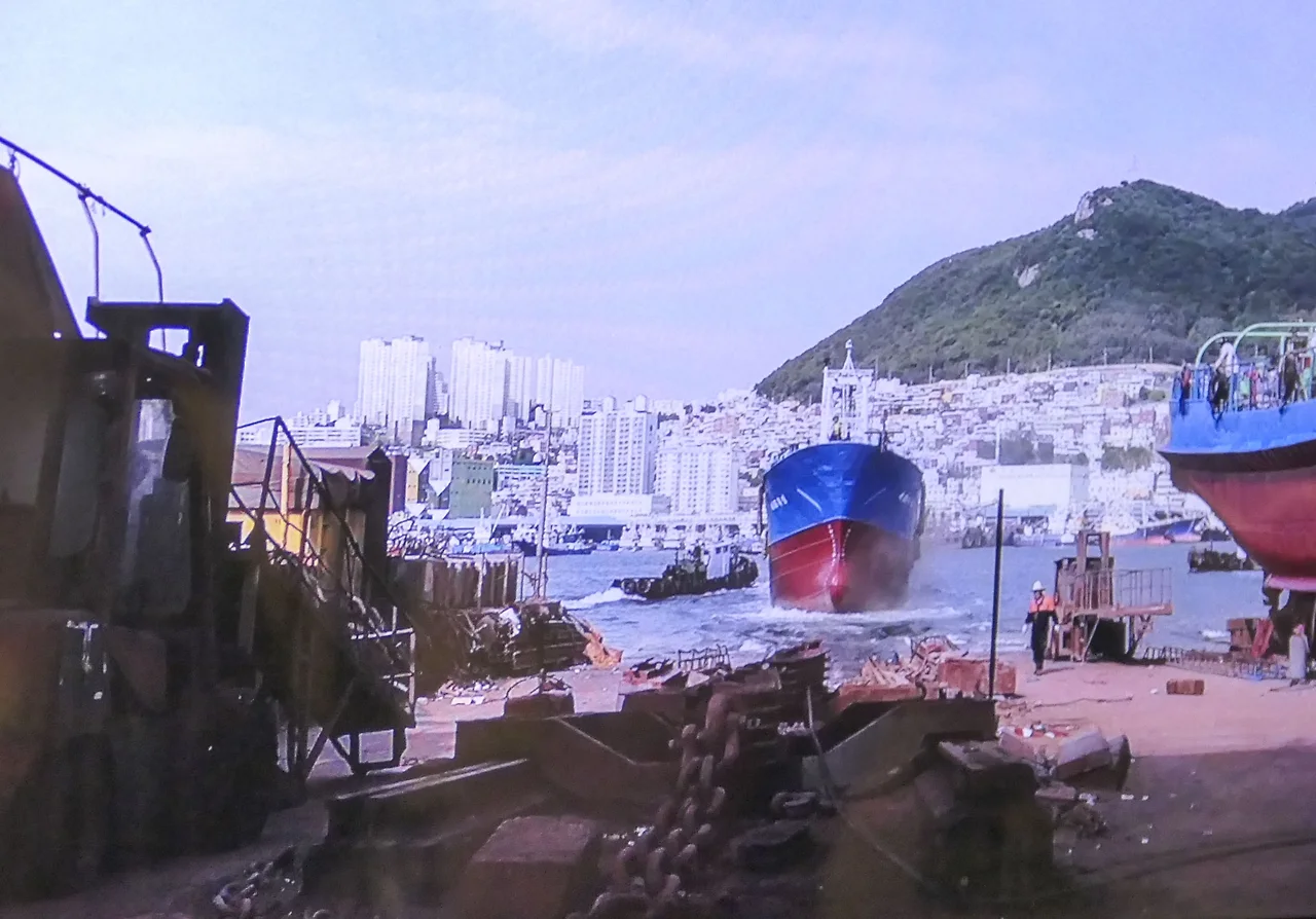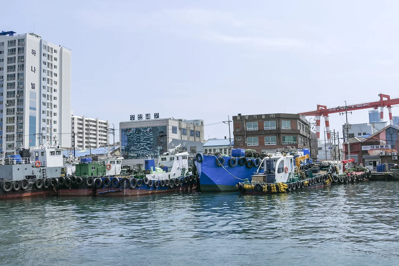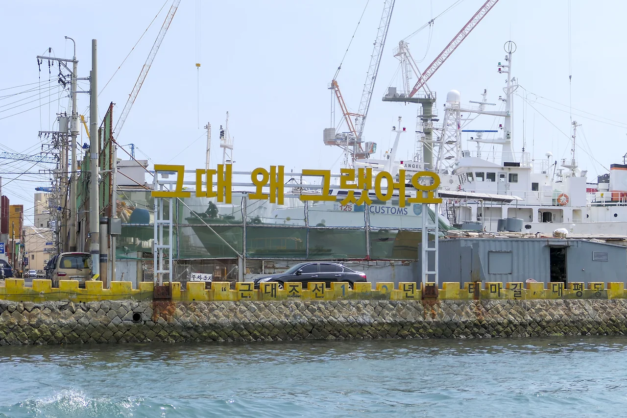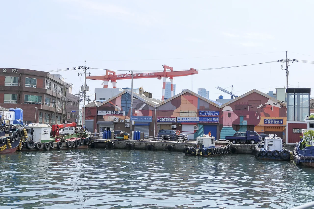 깡깡이 마을 안내센터에서 출발하여 한 바퀴 돌아오는 유람선 코스는 영도대교와 자갈치 시장을 시작으로 알록달록한 마을을 배경으로 빼곡하게 정박 중인 대형 선박과 어선들을 돌아 주로 러시아의 배를 수리하고 있다는 수리 조선소를 볼 수 있다. 대형 크레인과 큰 배 너머 보이는 아파트의 모습들이 영 어설프기는 하나 이것이 바로 부산의 현재와 과거이지 않을까 싶다.