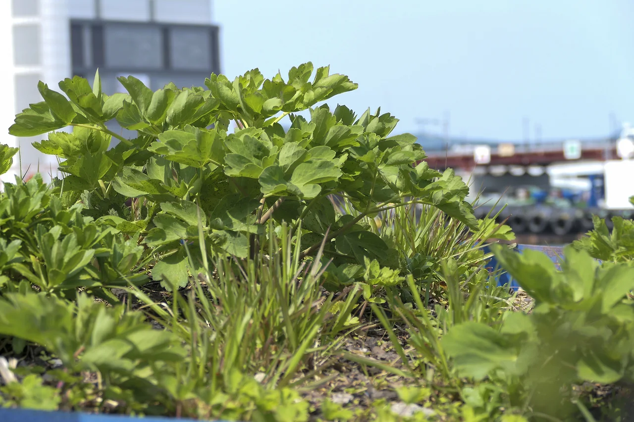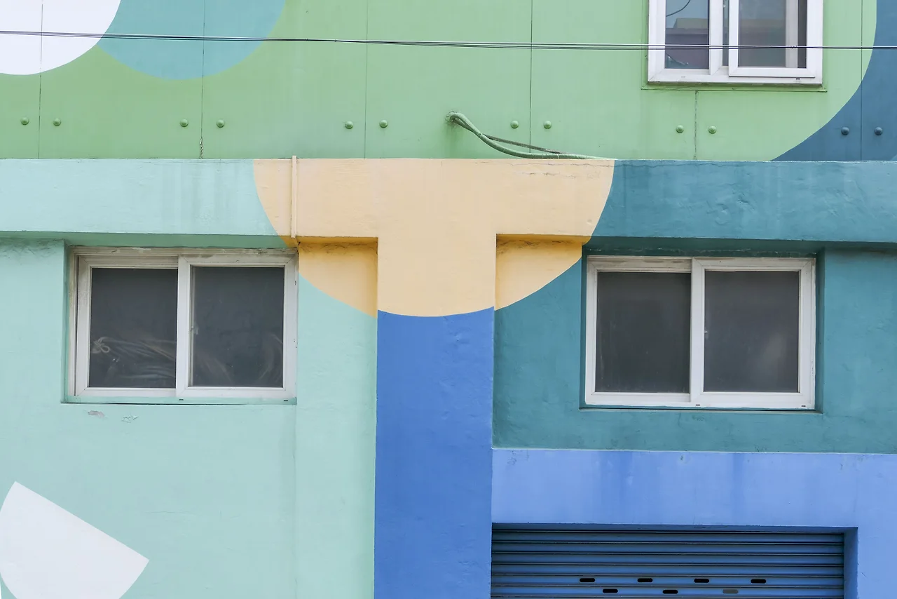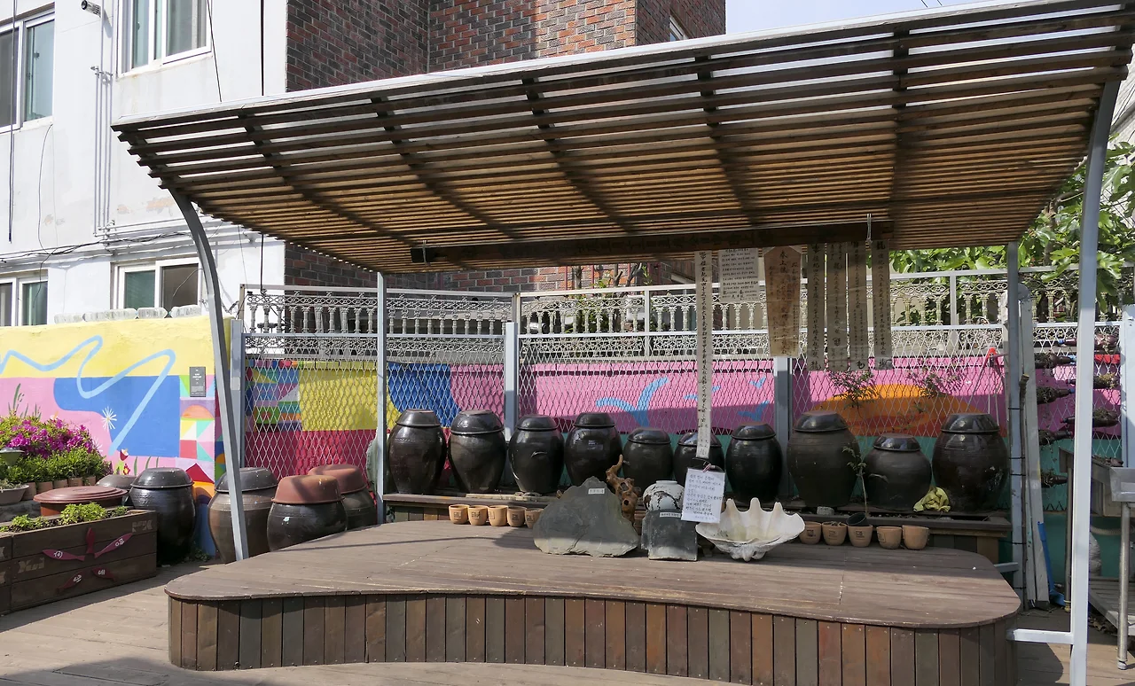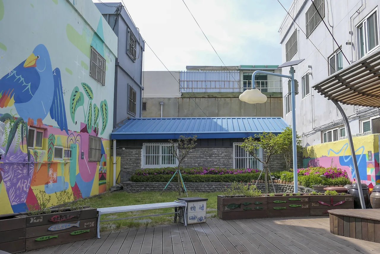 녹지가 거의 없는 깡깡이 마을에 주민들과 예술가들의 협업으로 만들어진 마을 쉼터.