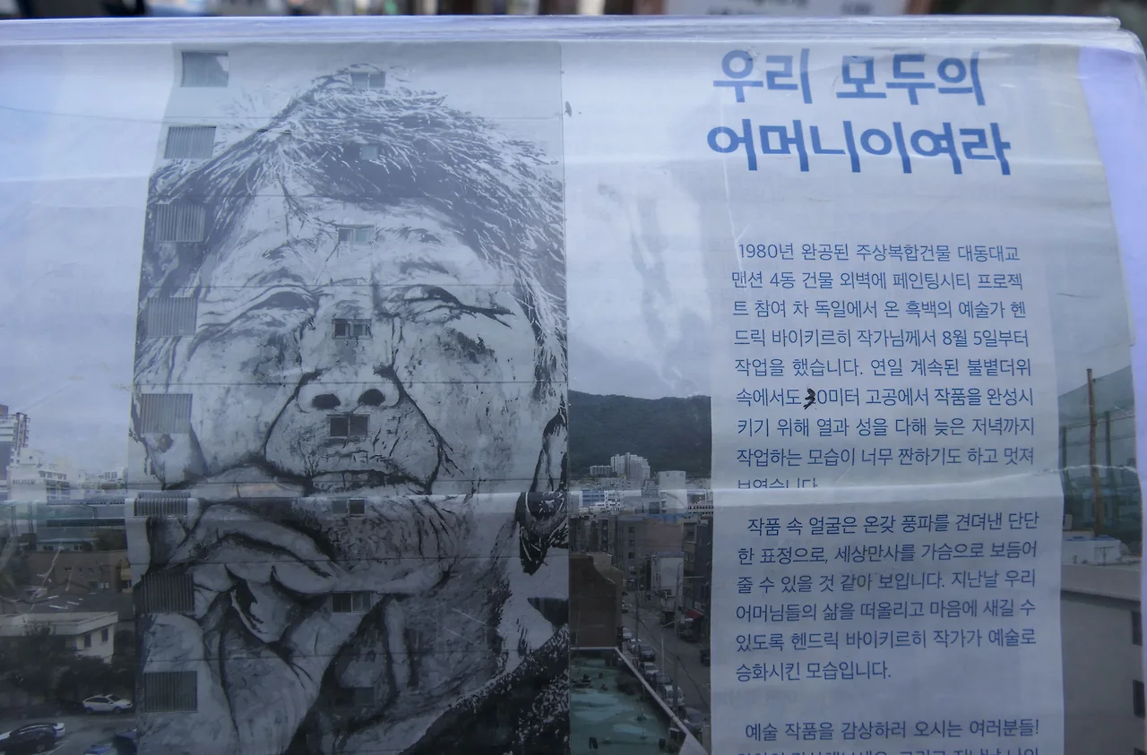고층 아파트 벽에 그려진 주름진 얼굴이 발길을 멈추게 한다. 이 벽화는 독일 출신 그라피티 벽화 작가인 헨드릭 바르 키르히가 그린 것이다. '우리 모두의 어머니'라는 작품으로 한때는 이 벽화로 인하여 민원이 들끓기도 했으나 언론 홍보를 통해 여론을 바꾸고 설득을 한 끝에 결국 민원은 사라지고 주민의 수긍을 얻을 수 있었다 한다.