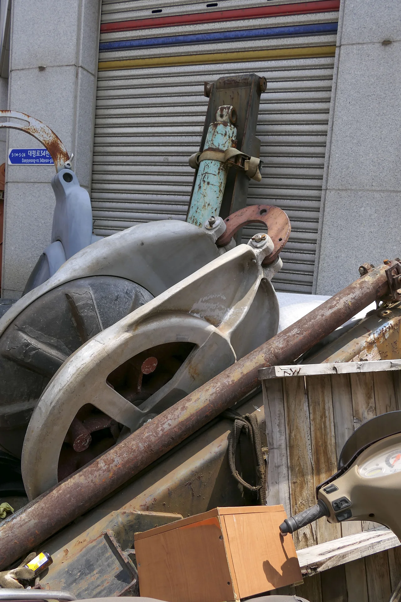 내비게이션에 '깡깡이 마을'이라 치고 꼬불꼬불한 마을을 두세 바퀴 돈 후에야 겨우 '깡깡이 안내센터'에 도착할 수 있었다. 주말이라 대부분 문을 닫았으나 마을은 낡은 수리 조선소와 공업사, 선박 부품업체 등으로 가득했다. 깡깡이 소리는 들을 수는 없었으나(현재는 기계로 처리) 주말에도 일하는 몇몇 공장에서 들려오는 기계음 소리만 이따금씩 들려왔다.