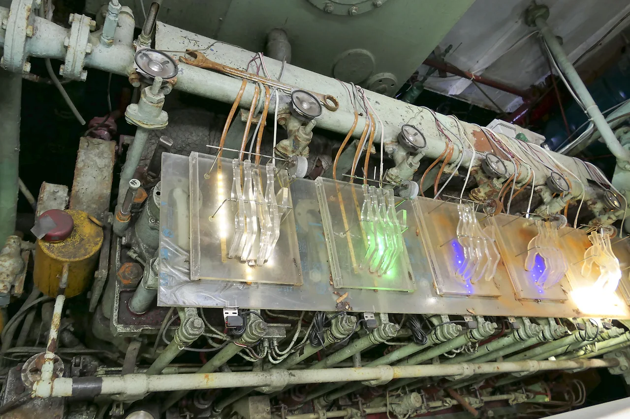 파도 파장 관람객들의 움직임에 따라 반응하는 모터에 의한 손가락의 상하운동으로 배의 역동성을 표현한 작품