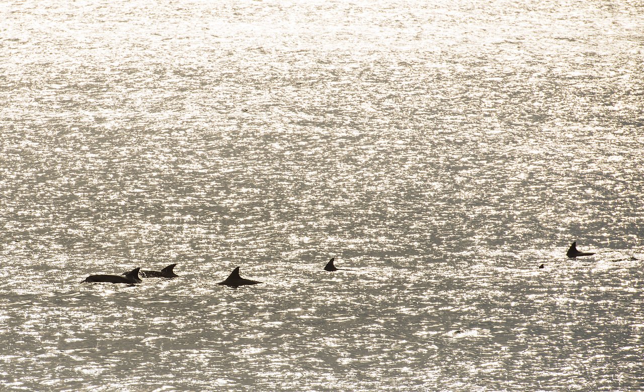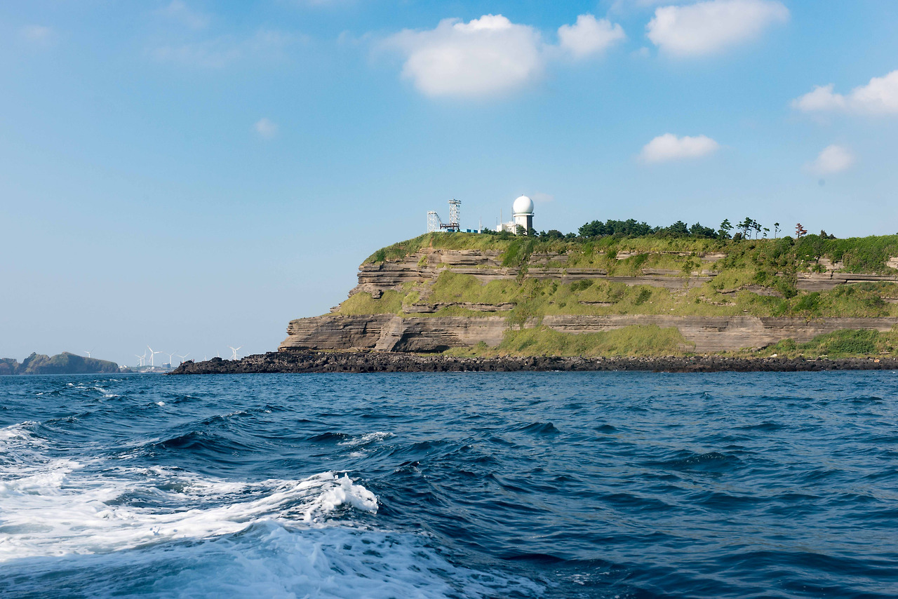 송악산으로 가는 길에 바다로 양어장 물이 뿜어져 나오는 곳이 있어 차를 멈춰 본다. 몇몇의 낚시꾼들은 고기가 잘 잡히는지 연신 낚싯대를 던지고 있다. 그때 "고래다!"라고 외치는 곳을 바라보니 삼삼오오 짝을 지은 녀석들이 여유롭게 제주 바다를 즐기고 있다. 수족관이 아닌 바다에서 고래를 보는 것이 처음이라 신기하기만 하다.