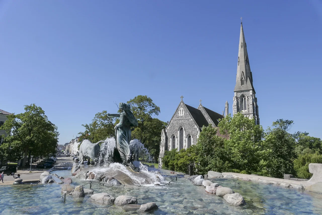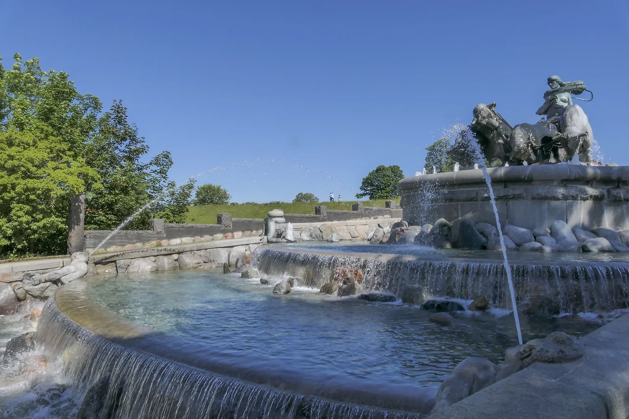 게피온 분수는 채찍을 들고 황소 4마리를 몰고 가는 여신 게피온을 형상화한 것이다. 신화에 따르면 스웨덴의 길피 왕이 재미있는 신들의 이야기를 들려준 늙은 여인에게 보답으로 땅을 주고 하루 동안 황소 4마리로 경작할 수 있게 해 주었다. 이 늙은 여인이 사실은 게피온 여신이었고 그녀에게는 4명의 아들이 있었는데 모두 황소로 변하여 하루 만에 거대한 땅을 덩어리째 파냈고 그 땅덩어리를 바다 한가운데에 내려놓자 코펜하겐이 있는 셀란 섬이 되었다. 땅을 파낸 자리는 스톡홀름의 멜라렌 호라는데 실제로 두 곳의 모양이 비슷하단다.